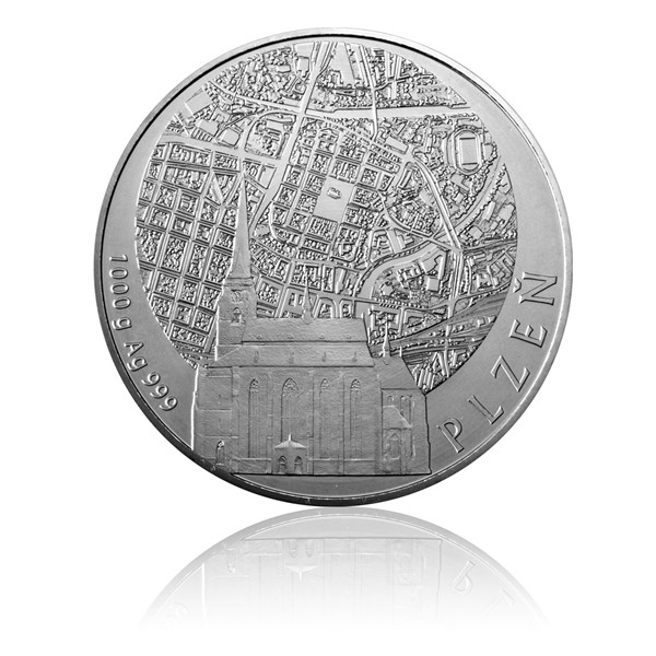 Stříbrná kilogramová sběratelská medaile Statutární města ČR - Plzeň stand