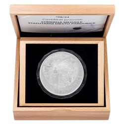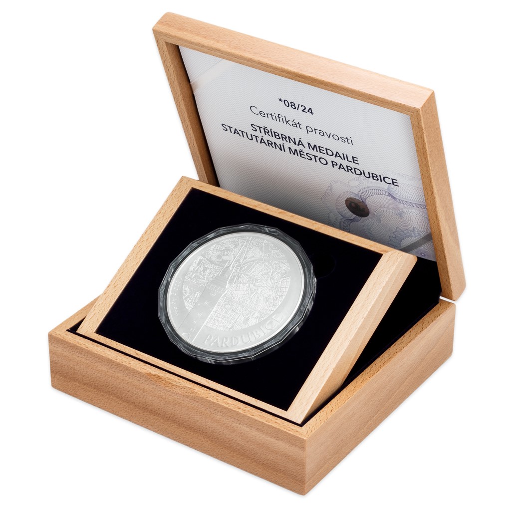 Seznam statutárních měst České republiky se postupně rozrůstá – v současnosti je jich 27 – a stejně tak se rozrůstá cyklus sběratelských medailí České mincovny s motivy našich nejvýznamnějších sídel. V roce 2019 se v jednom kilogramu ryzího stříbra objevují Pardubice.