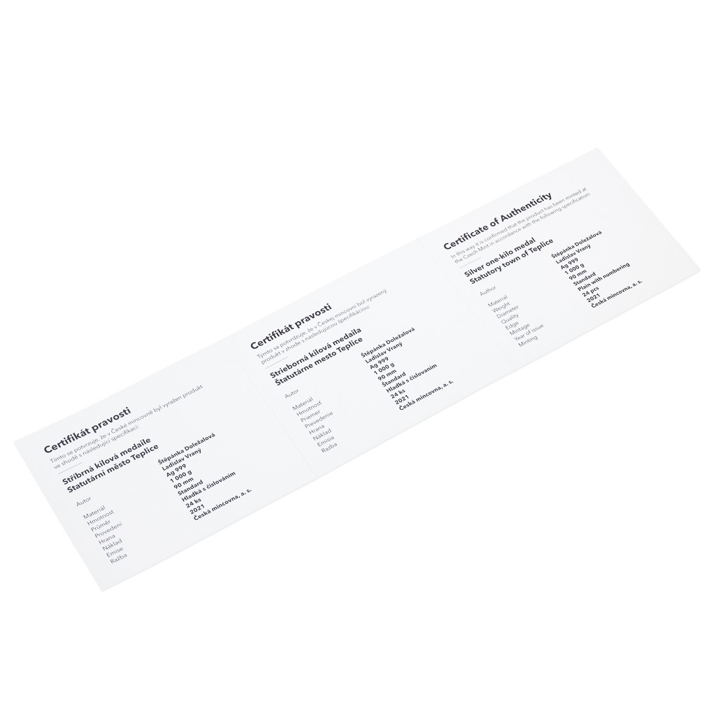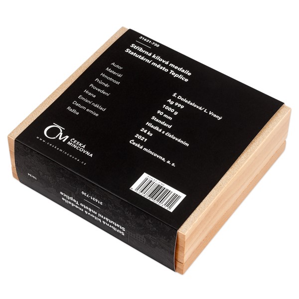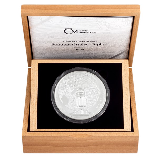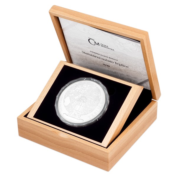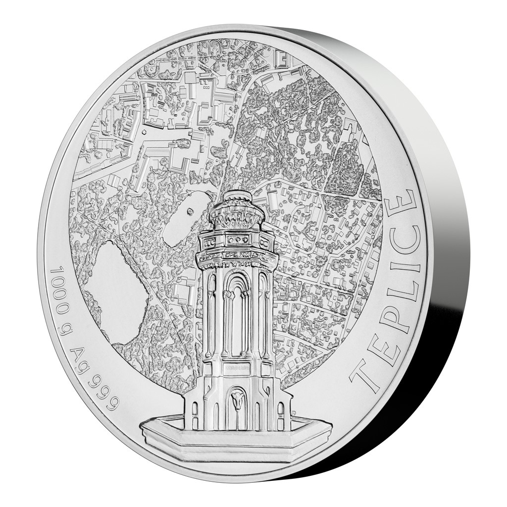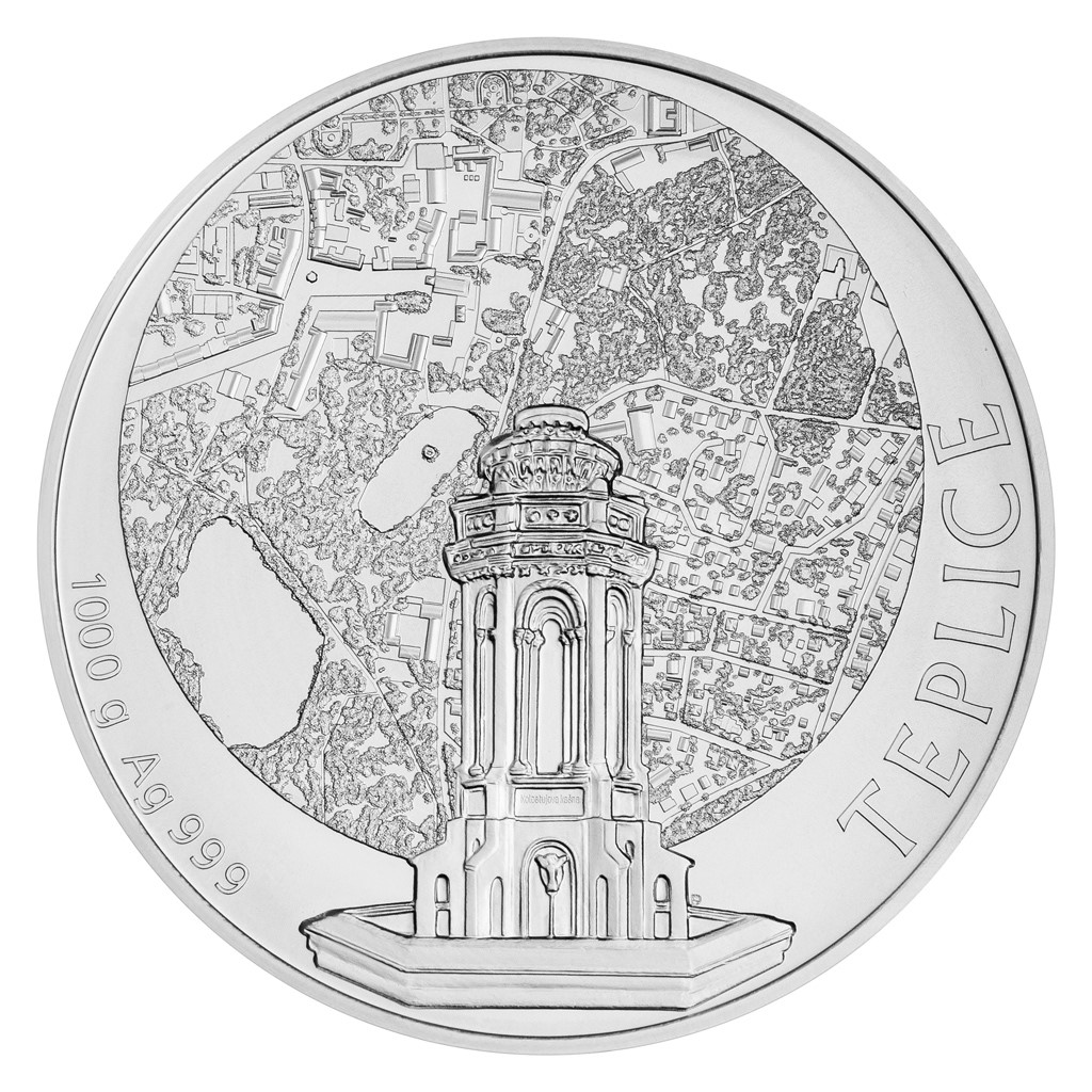 Šestnáctá stříbrná medaile České mincovny o hmotnosti jednoho kilogramu, která vychází v rámci cyklu věnovaného našim statutárním městům, představuje Teplice.