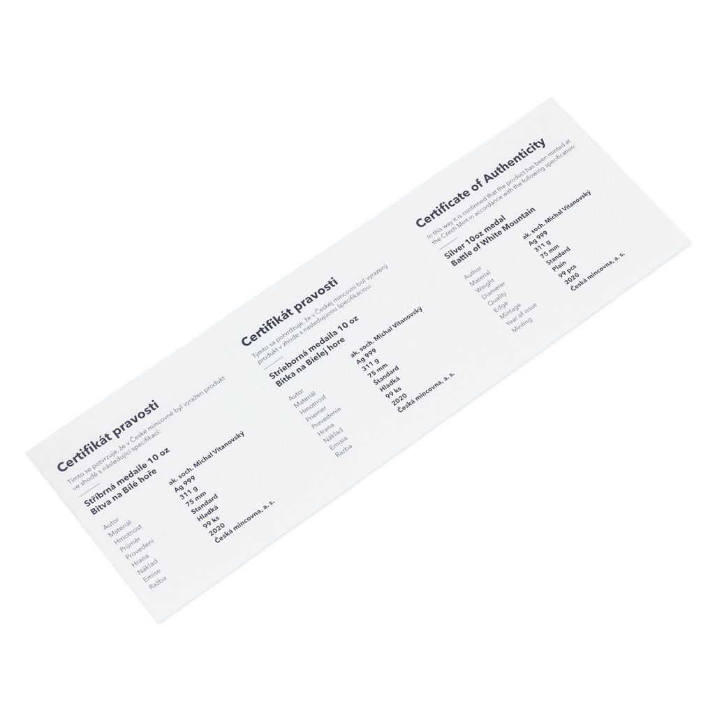 V roce 2020 je tomu rovných 400 let od památné bitvy na Bílé hoře. Klíčovou událost našich dějin připomíná pamětní medaile České mincovny vyražená z deseti trojských uncí ryzího stříbra.