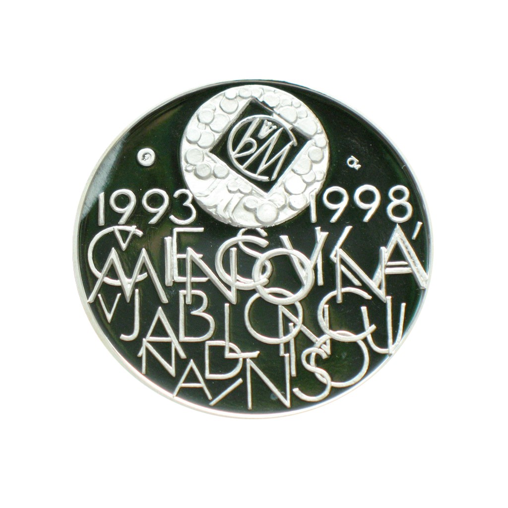 Stříbrná medaile 5.výročí České mincovny a české měny proof