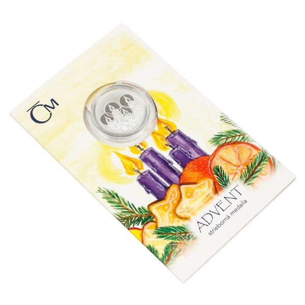 Stříbrná medaile, která rozšiřuje volný dárkový cyklus České mincovny s vánočními motivy, připomíná sváteční čas adventu.