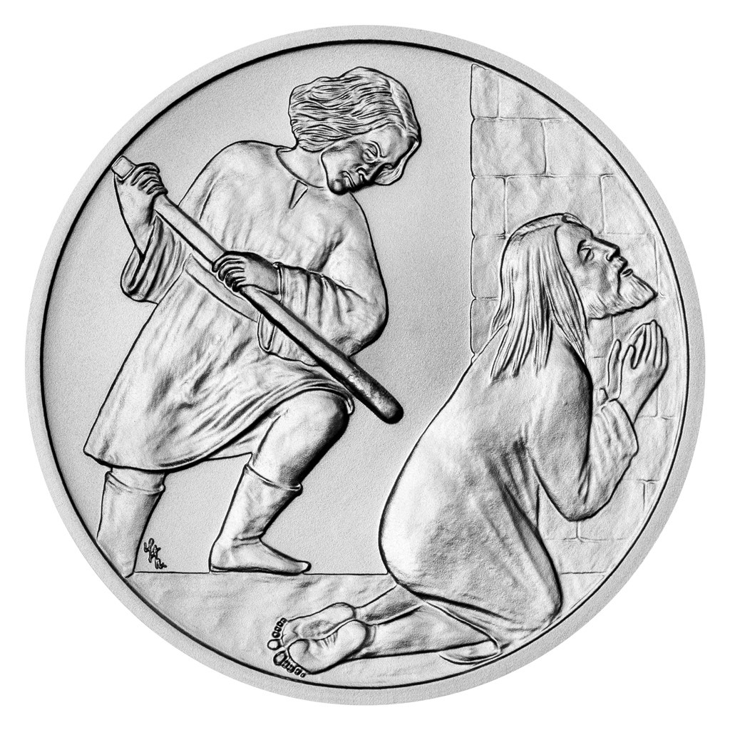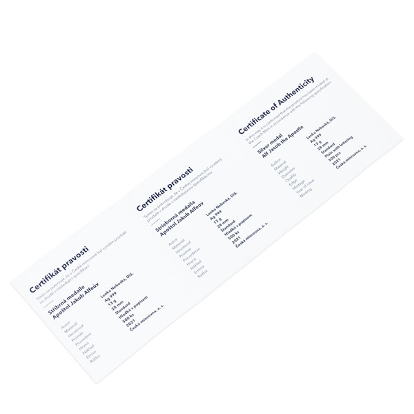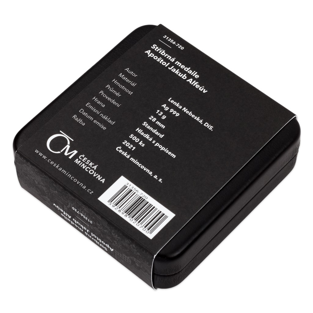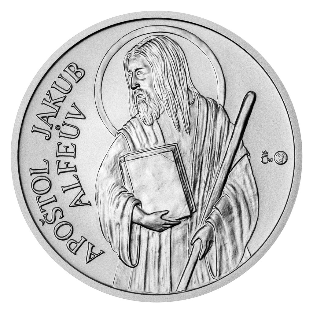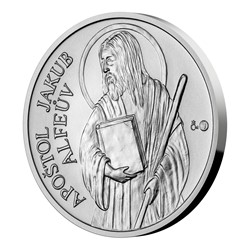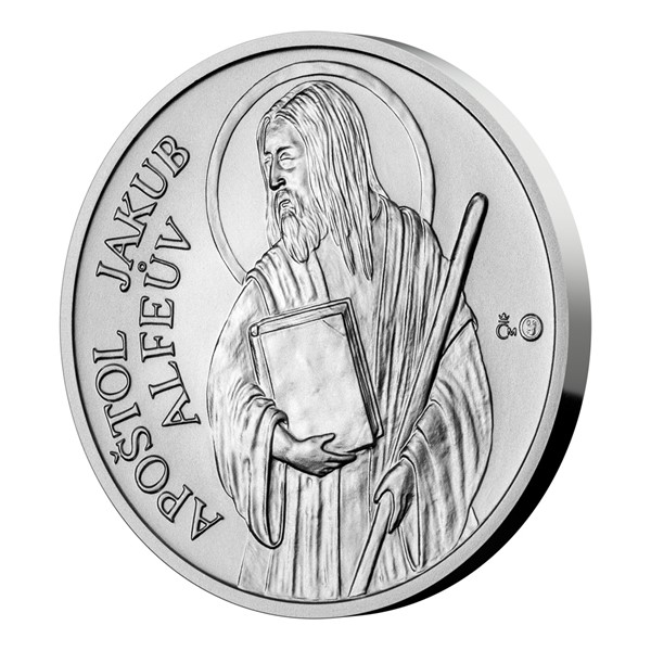 Na jedenácté stříbrné medaili České mincovny z dvanáctidílné série s názvem Apoštolové se objevuje svatý Jakub Alfeův.
