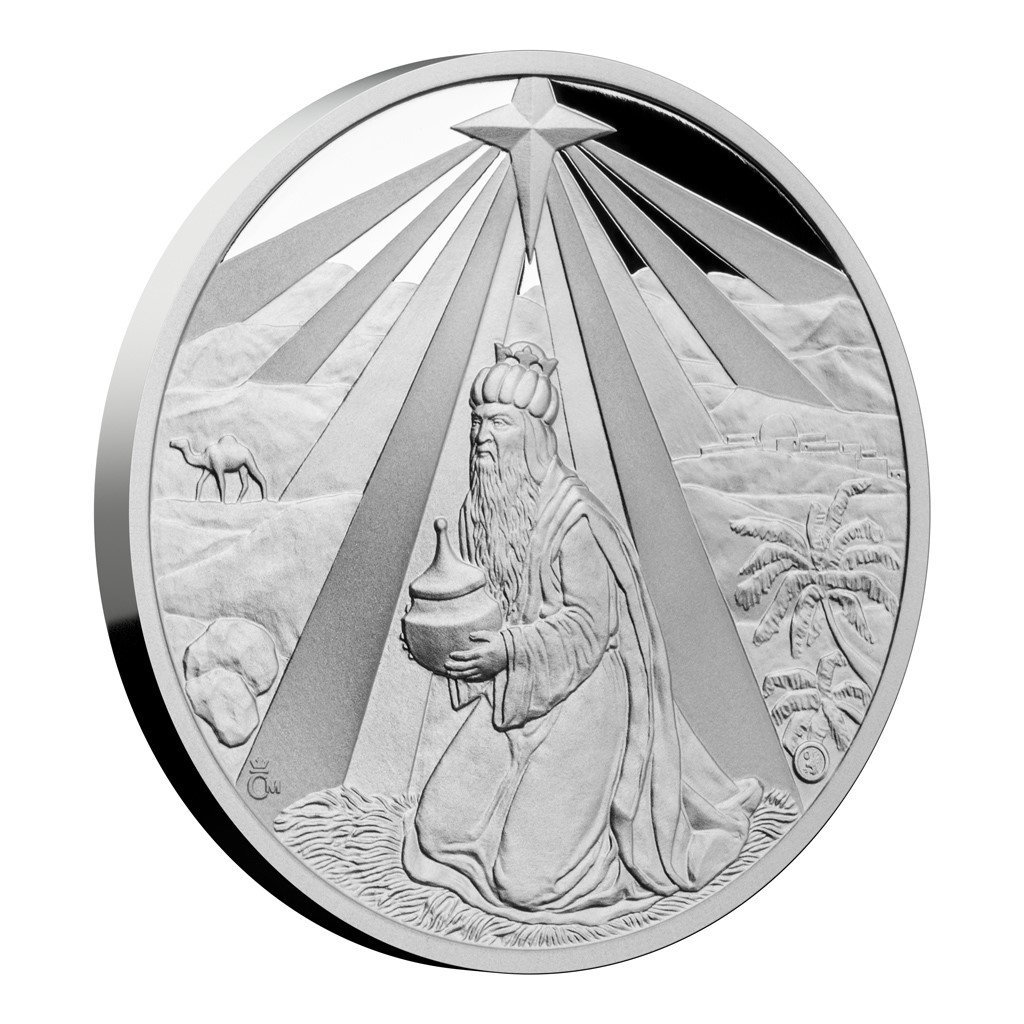 Série stříbrných pamětních medailí České mincovny představuje po členech Svaté rodiny další neodmyslitelnou postavu betlémské scény – jednoho ze tří králů Baltazara.