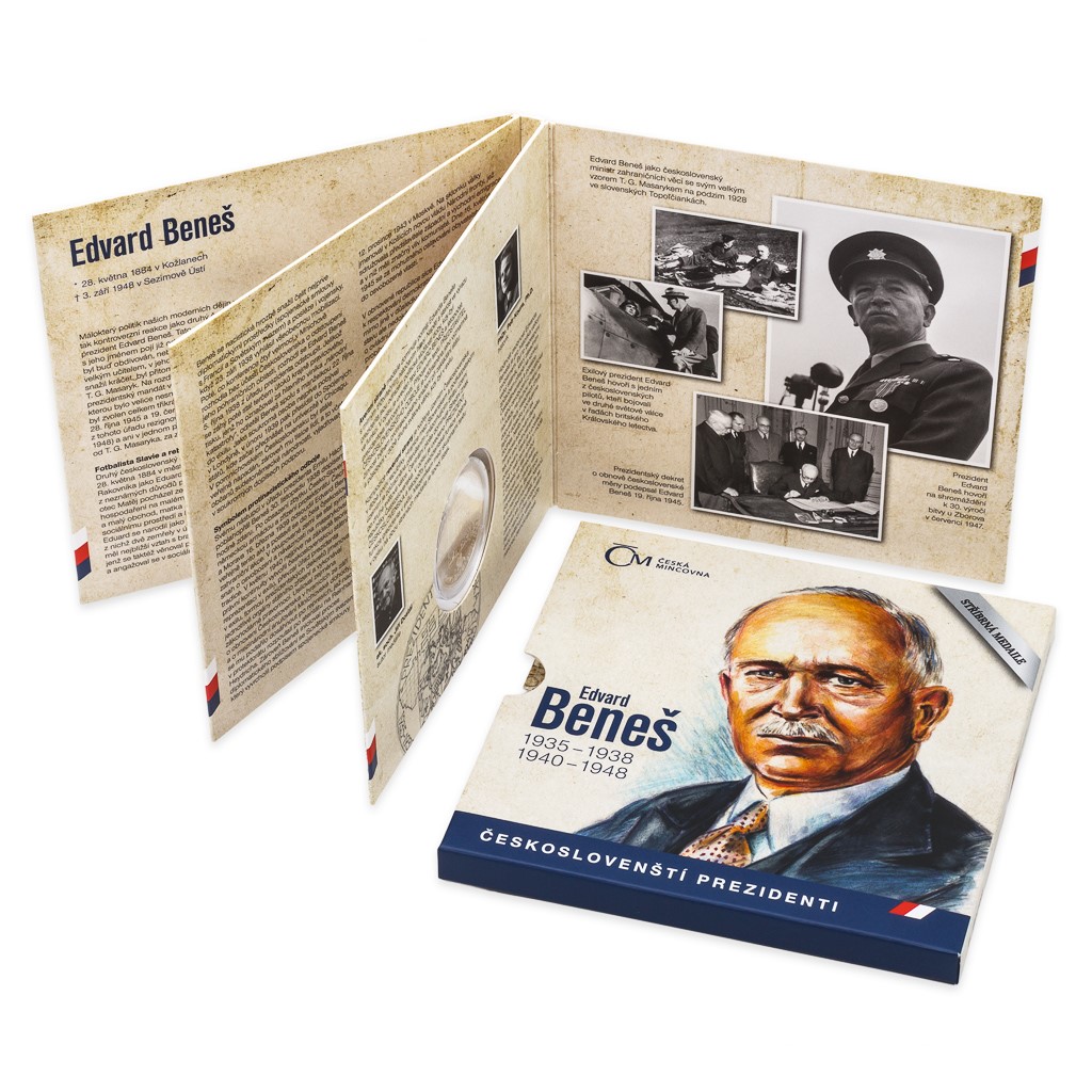 Prvním prezidentem samostatného Československého státu se v roce 1918 stal Tomáš Garrigue Masaryk, kterého po abdikaci v roce 1935 v úřadu vystřídal Edvard Beneš. Tento muž dlouhá léta bojoval za svou zemi doma i v zahraničí. Za jeho nesporné zásluhy mu patří velký dík, který Česká mincovna vyjadřuje zdařilou stříbrnou medailí Edvard Beneš. Ta je již druhou emisí patřící do sofistikované sběratelské série nazvané Českoslovenští prezidenti. Odborným poradcem a tvůrcem historických textů série se stal historik PhDr. Petr Koura, Ph.D. působící na Ústavu českých dějin Filozofické fakulty Univerzity Karlovy v Praze.