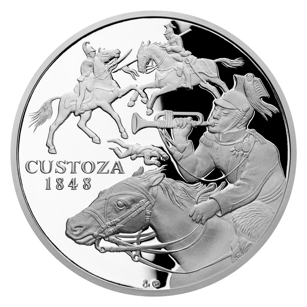 „Je politováníhodné, že ačkoli se Vídeň může honosit bronzovým pomníkem Josefa Václava Radeckého z Radče, ten pražský z Malostranského náměstí je stále odklizen v lapidáriu. Jednoho z největších vojevůdců, který pocházel z Čech, jsem se proto rozhodl uctít touto medailí,“ říká Karel Zeman. Devátá stříbrná medaile z cyklu Dějiny válečnictví vzdává hold Radeckého triumfu v bitvě u Custozy.