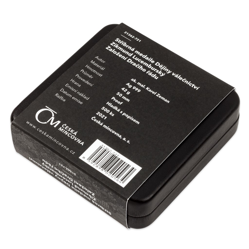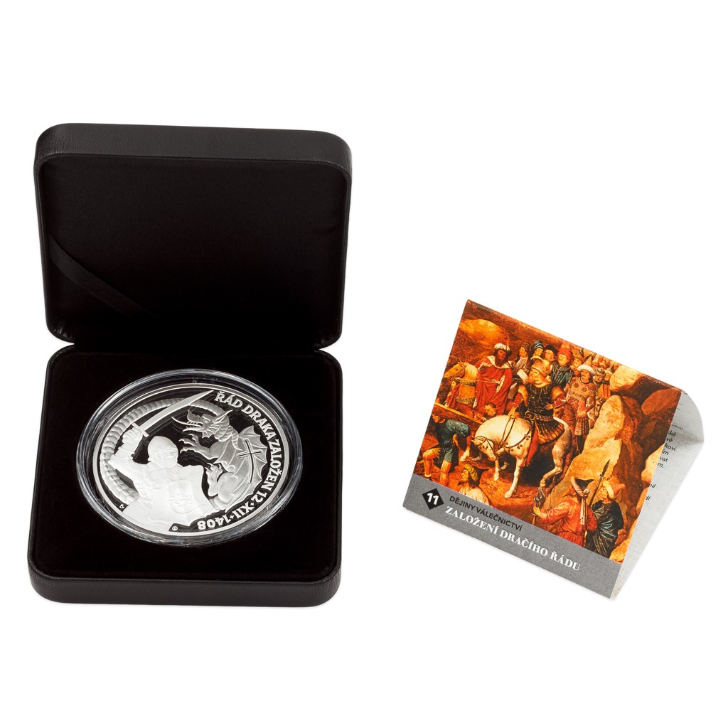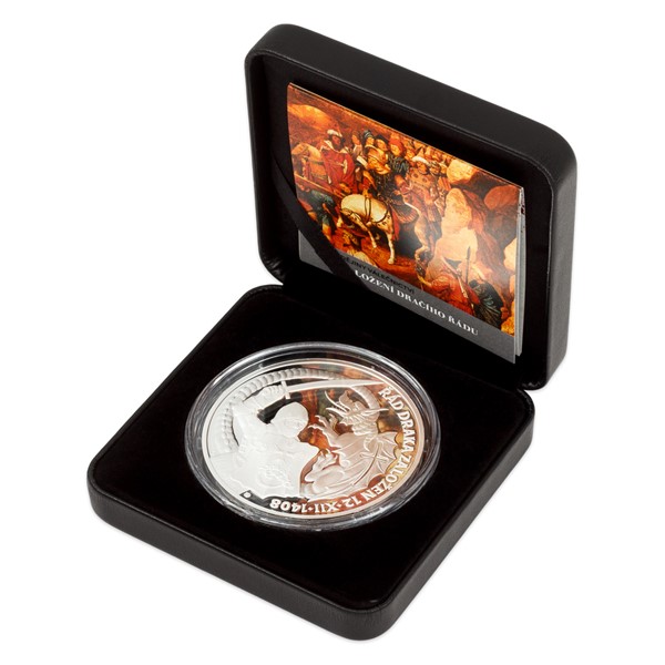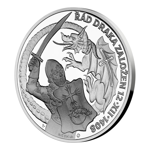 V jedenácté stříbrné medaili České mincovny z autorského cyklu Karla Zemana s názvem Dějiny válečnictví se zrcadlí příběh rozporuplného císaře Zikmunda Lucemburského a jeho Dračího řádu.