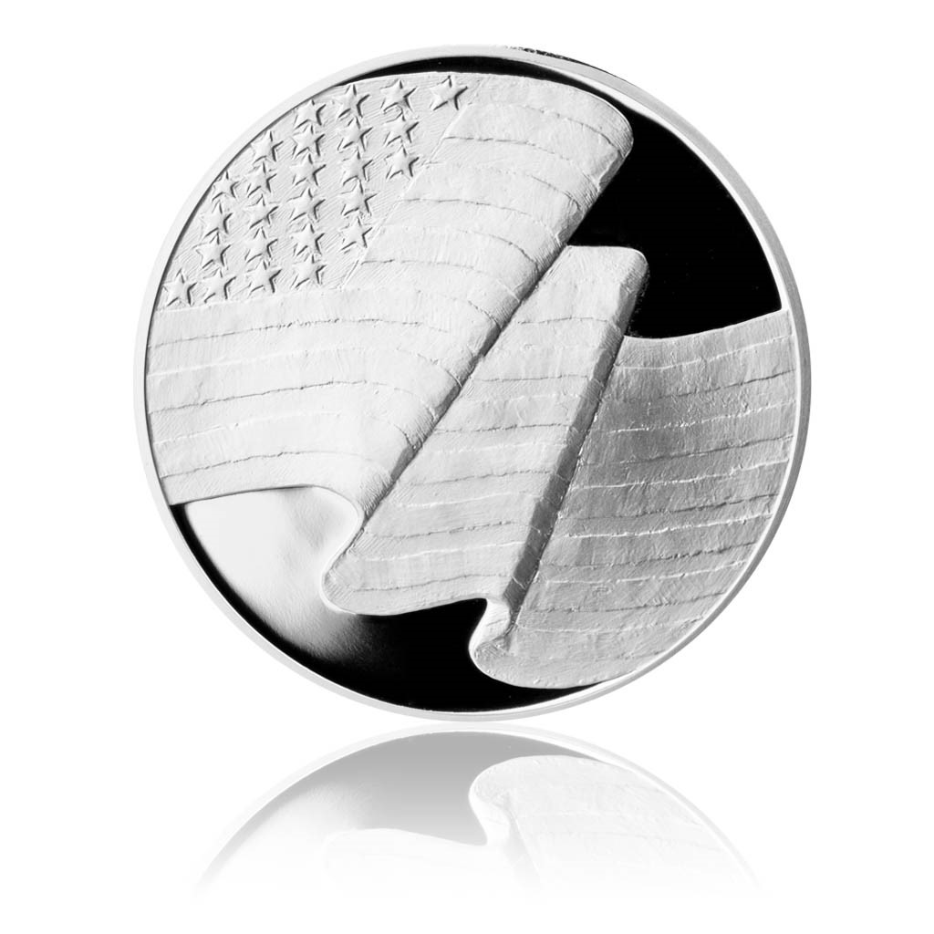 Celou plochu reverzní strany zaujímá kompozice připomínající vlající americkou vlajku.