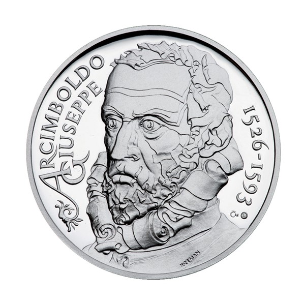 Italský malíř Giuseppe Arcimboldo byl jedním z malířů na dvoře Rudolfa II. Vynalezl typ podobizny, skládající se z malovaných zvířat, květin, ovoce a předmětů komponovaných do podoby lidské hlavy. Některé obrazy jsou satirické portréty osobností od dvora, jiné jsou alegorické personifikace (jaro, léto a další). V roce 1587 se Arcimboldo vrátil do Milána, ale zůstal v kontaktu s císařem. Koncem svého života poslal císaři jeho výstřední portrét v podobě antického boha Vertumna. V římské mytologii je Vertumnus bohem změny, ročních období, růstu rostlin, zahrad a ovocných rostlin. Může měnit svoji podobu, jak vypráví Ovidius ve svém XIV. svazku díla Proměny (latinsky Metamorphoses). Proměnil se ve starou ženu, aby nalákal, svedl a přemluvil k sňatku krásnou Pomonu, bohyni zahrad a ovocných stromů. Averzní stranu medaile tvoří autoportrét Giuseppa Arcimbolda poskládaný z papírových svitků s letopočtem narození a úmrtí. Reverzní straně kraluje podoba císaře Rudolfa II. jako římského boha Vertumna a vyobrazení Pomony – bohyně zahrad a ovocných stromů. Limitovaná emise 1000 kusů.