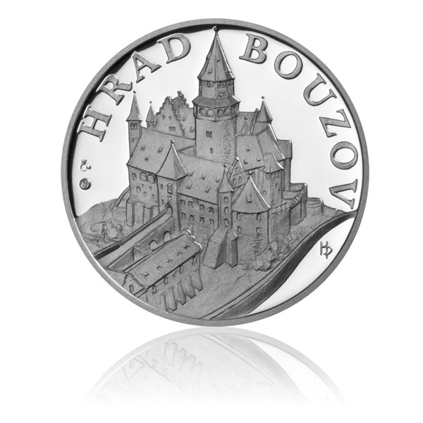 Hrad Bouzov patří mezi nejvyhledávanější památky v České republice a je to oblíbené místo filmařů. Nachází se ve stejnojmenné obci západně od města Litovel na střední Moravě. Založení hradu se datuje do počátku 14. století. Jeho dnešní podoba však vznikla rozsáhlou romantickou přestavbou na přelomu 19. a 20. století. Majitelé hradu, jenž získal patrně jméno po svém prvním známém držiteli Búzovi z Búzova, se často měnili. V jeho držení se vystřídala celá řada českých a moravských rodů. V roce 1999 byl hrad prohlášen národní kulturní památkou. V současnosti je Bouzov vyhledávanou lokalitou pro natáčení filmů a televizních projektů. Autor medaile Mgr. Petr Horák zvolil jako motiv averzní strany perspektivní pohled zepředu na hrad Bouzov, v horní části umístil v částečném opisu název hradu. Na reverzní straně je zachycena část interiéru hradu, sál s gotickým žebrovím, sloupem a erbem moravského markraběte Jošta, který byl jedním z četných majitelů hradu ve 14. století. Limitovaný náklad 1000 kusů.