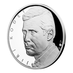 Jiřího Kodeta, stejně jako všechny předchozí osobnosti z cyklu Hvězdy stříbrného plátna, zvěčnil do ryzího stříbra vynikající portrétista MgA. Martin Dašek. Averzní straně vévodí charismatický portrét mladého herce s jeho jménem v opisu. Reverzní strana pak patří propracované koláži, která má podobu filmového kotouče, z něhož se odvíjí celuloidový pás. Jednotlivá filmová políčka pak zachycují rozličné role Jiřího Kodeta. Jednou z nich je cholerický otec Kraus z filmu Pelíšky, jehož nesmrtelná hláška „DÁVÁM BOLŠEVIKOVI ROK, MAXIMÁLNĚ DVA“ je uvedena v opisu.