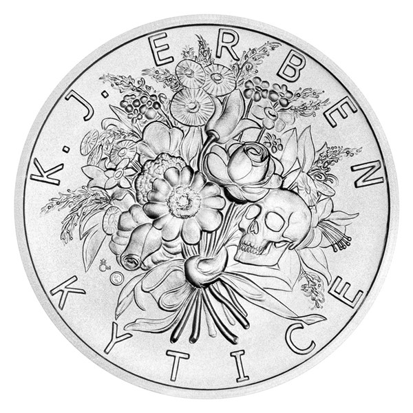 Autorem averzní strany medaile je Mgr. Petr Horák, který se při tvorbě reliéfu nechal unést depresivní atmosférou Erbenovy sbírky. Do koláže umístil zoufalou dívku, dítě v zavinovačce, nad kterým pláče holubice, a šibeniční vrch. Reverzní strana, která je dílem MgA. Jana Háska a která je společná celé sérii, pak předkládá bohatý pugét, ve kterém se vedle nejrůznějších květin ukrývá lidská lebka.