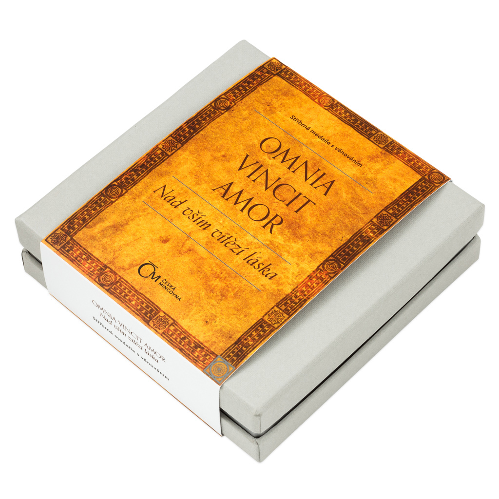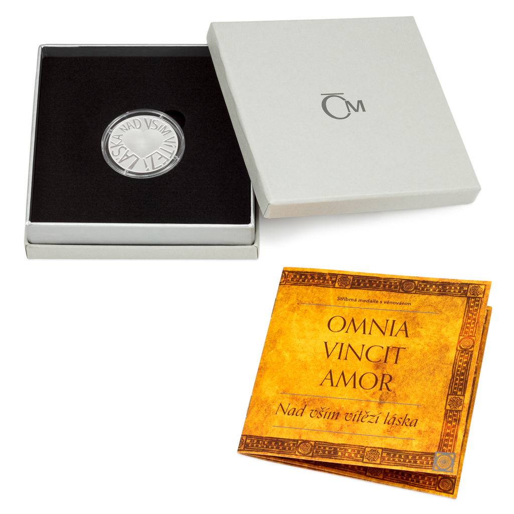 Stříbrná medaile České mincovny „Omnia vincit amor“ představuje originální dárek, jehož prostřednictvím vyjádříte nejrůznější formy lásky – od platonické náklonnosti po romantickou touhu. Přímo na medaili vyryjeme text podle vašeho přání.