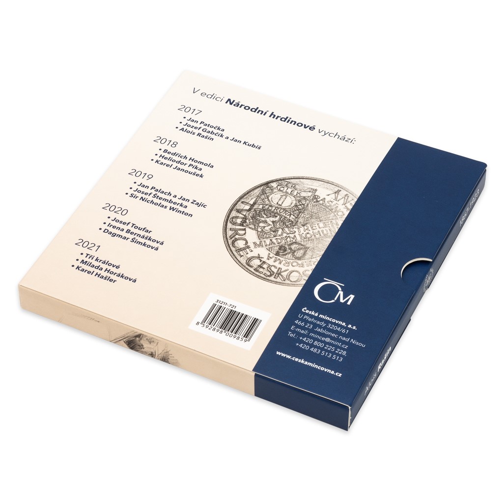 Každá medaile se ukrývá ve výpravném balení v podobě knížky, která přibližuje Rašínův životní příběh. Autorem pojednání je přední český historik PhDr. Petr Koura, Ph.D.