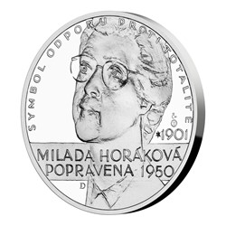 Před 70 lety naposledy vydechla Milada Horáková. U příležitosti tohoto výročí jí vzdává hold stříbrná medaile České mincovny z cyklu Národní hrdinové.