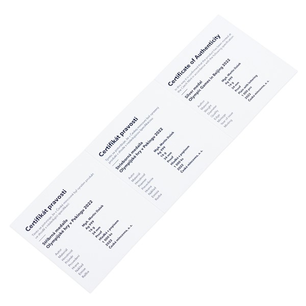 Čtyřiadvacáté zimní olympijské hry, které přivítají 2892 sportovců v 15 sportech, se konají v únoru 2022 – kvůli koronavirové pandemii pouhého půl roku po skončení letních olympijských her. Jako památka na velkolepou sportovní událost, kterou hostí čínský Peking, vznikly tradiční stříbrné medaile České mincovny.