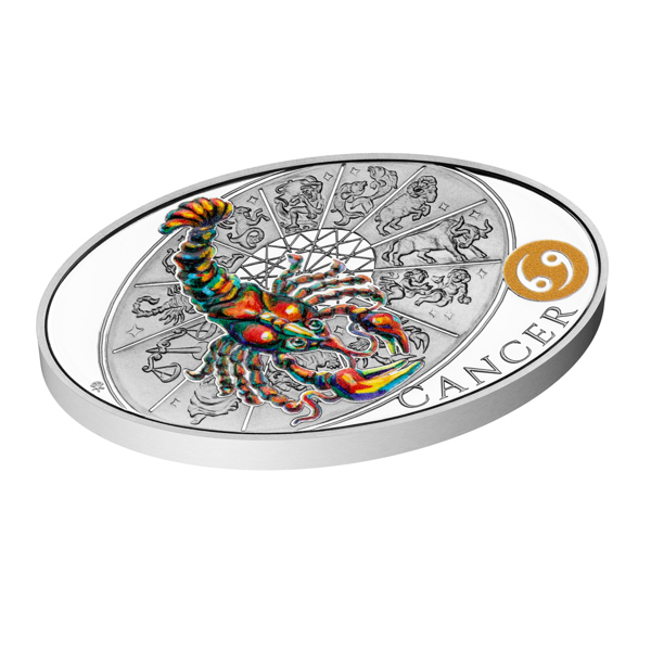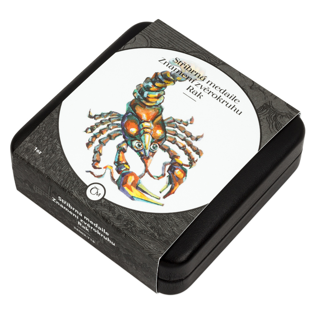 Stříbrná medaile České mincovny z dárkové série s motivy 12 znamení zvěrokruhu se stane nejen krásným, ale také hodnotným talismanem pro každého, kdo se narodil ve znamení Raka.