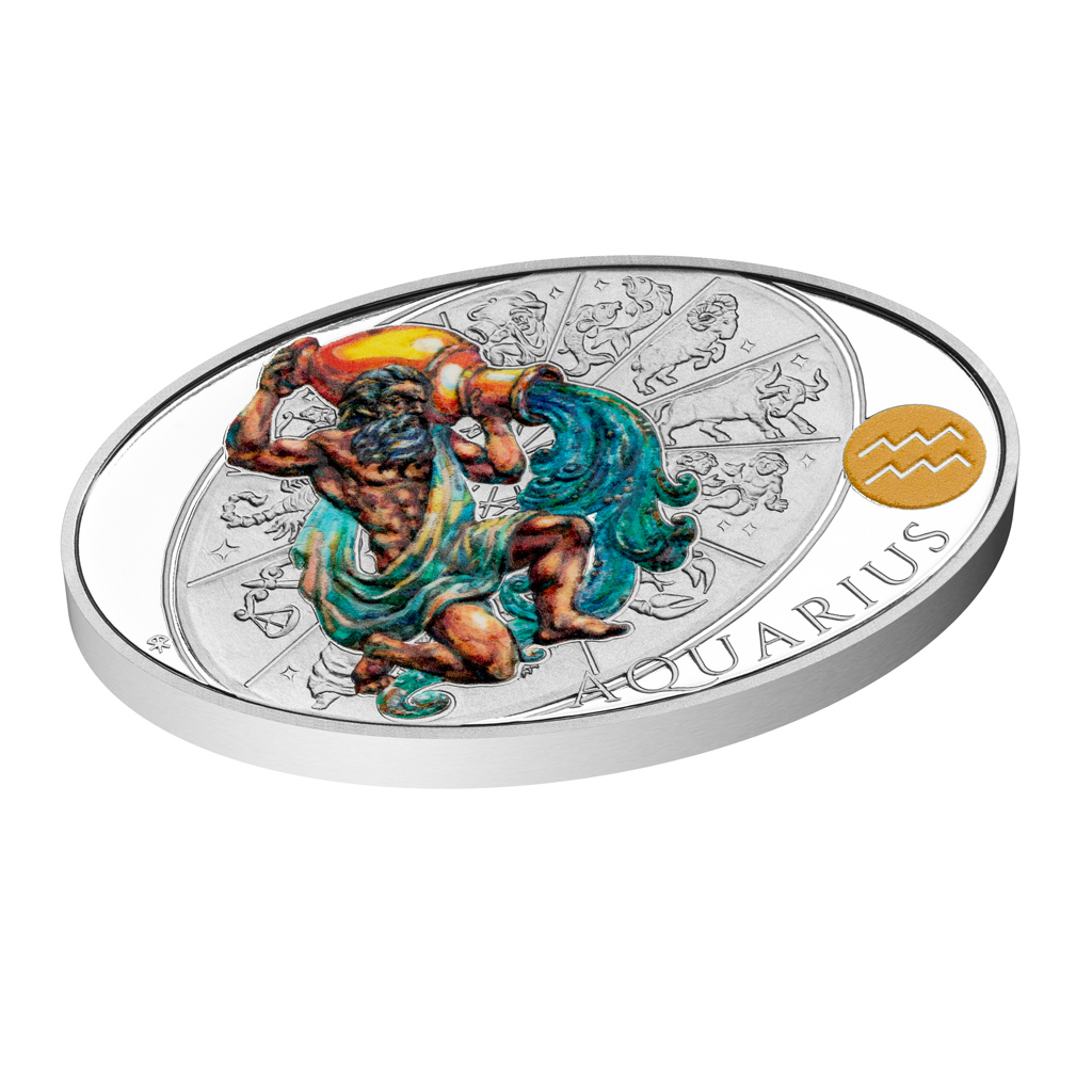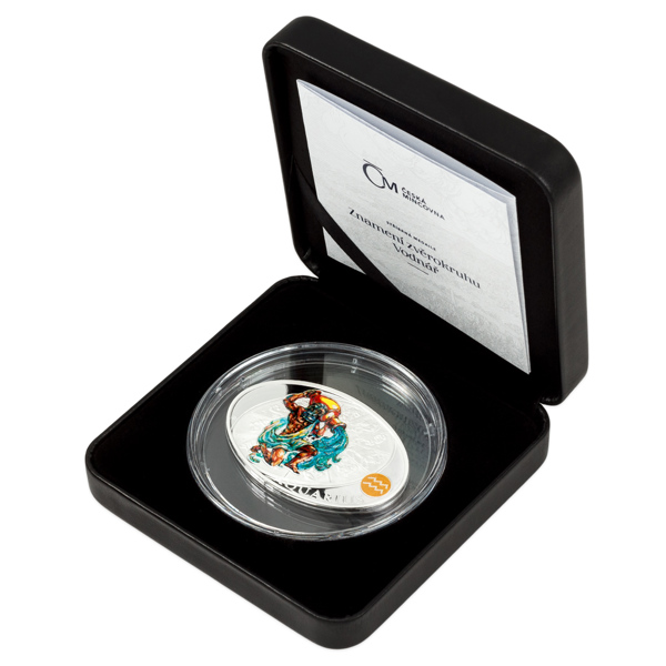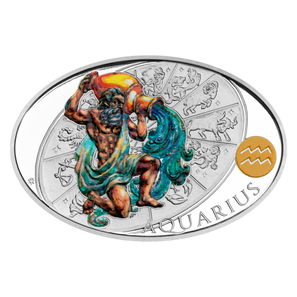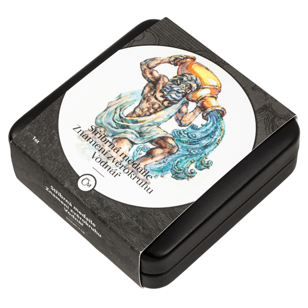 Stříbrná medaile České mincovny z dárkové série s motivy 12 znamení zvěrokruhu se stane nejen krásným, ale také hodnotným talismanem pro každého, kdo se narodil ve znamení Vodnáře.