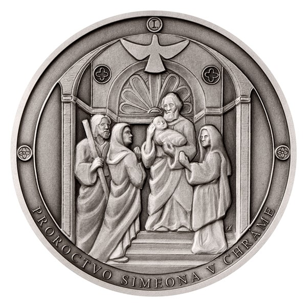 Stříbrná medaile Panna Marie Sedmibolestná - Proroctví Simeona v chrámu SK stand