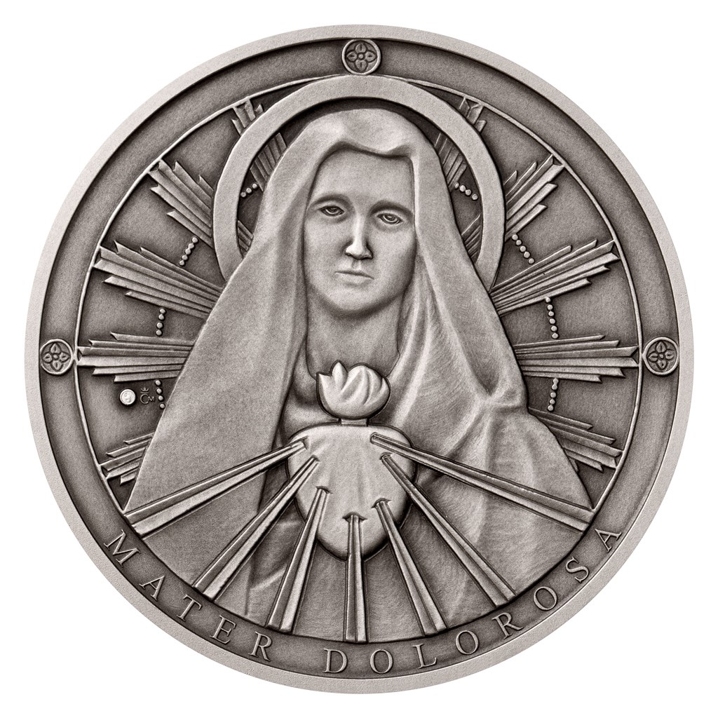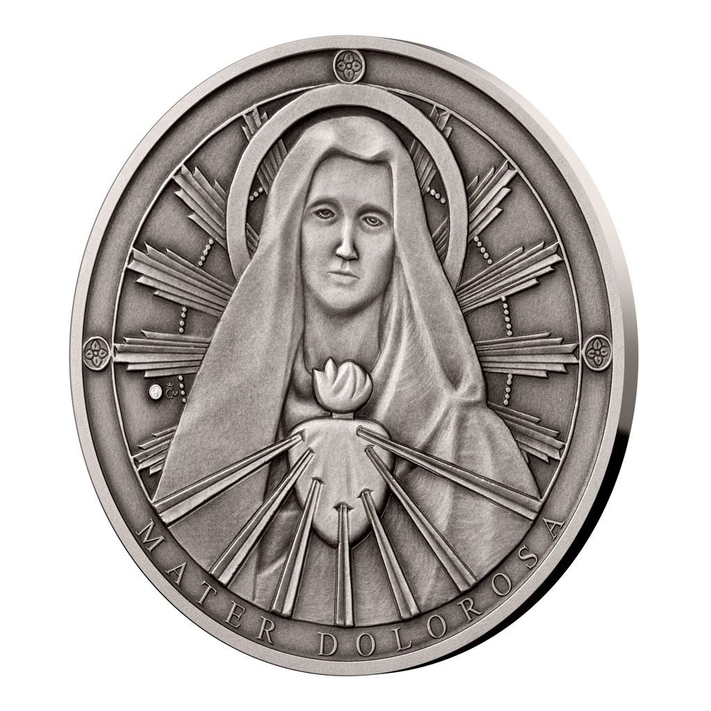 Jen těžko si lze představit bolest, kterou cítila matka, když stála u těla svého ukřižovaného syna. Mariino utrpení, které sdílela s Ježíšem, ale začalo mnohem dříve. K rozjímání o sedmi událostech, kterými bylo poznamenáno její neposkvrněné srdce, nás zve památka Panny Marie Sedmibolestné. První stříbrná medaile České mincovny připomíná proroctví Simeona v chrámu.