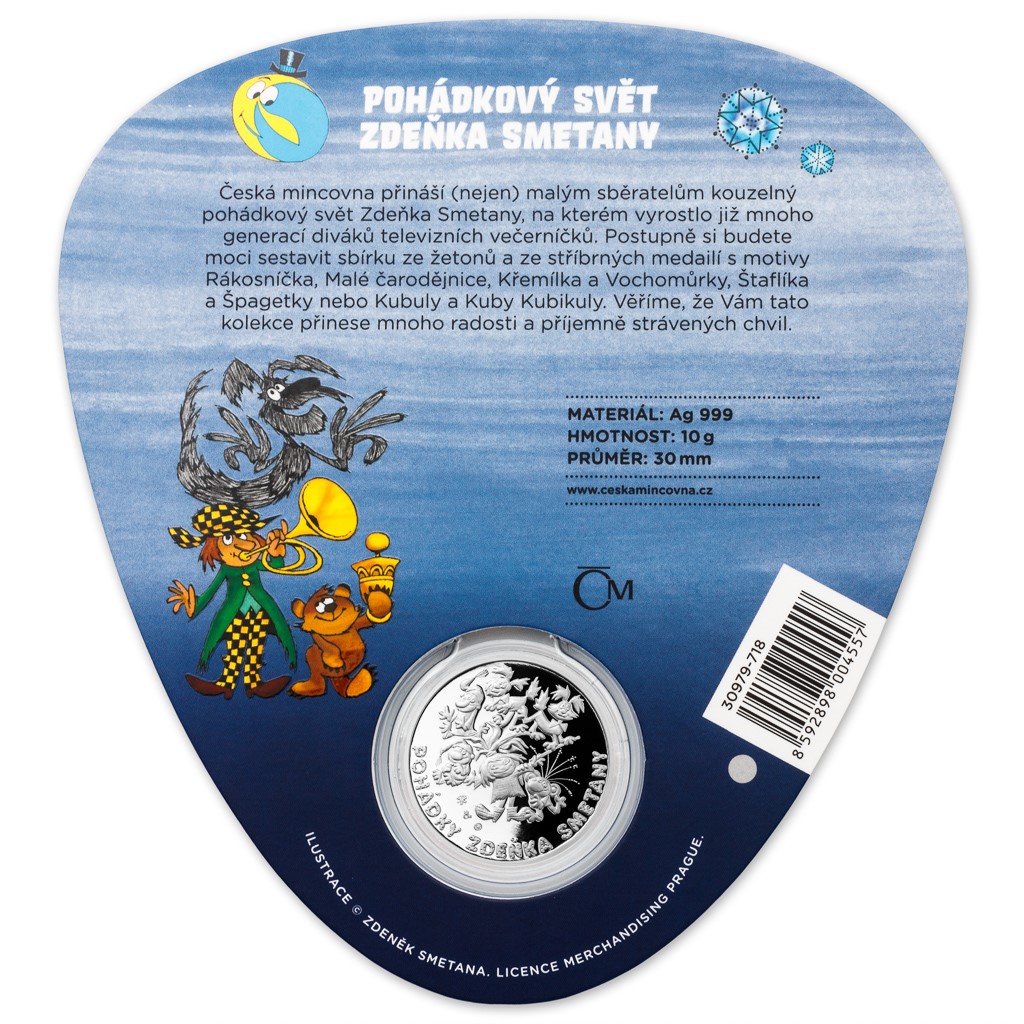 Kubula a Kuba Kubikula je líbivé umělecké dílko z ryzího stříbra, jehož averz zdobí oba kolorovaní večerníčkoví hrdinové. Reverz ve formě decentní koláže nese další animované postavičky Zdeňka Smetany a název celé pohádkové série, která je svým krásným zpracováním i nostalgickým půvabem předurčena k potěše nejen našich nejmenších. Zajistěte si další kousek do večerníčkové sbírky včas!