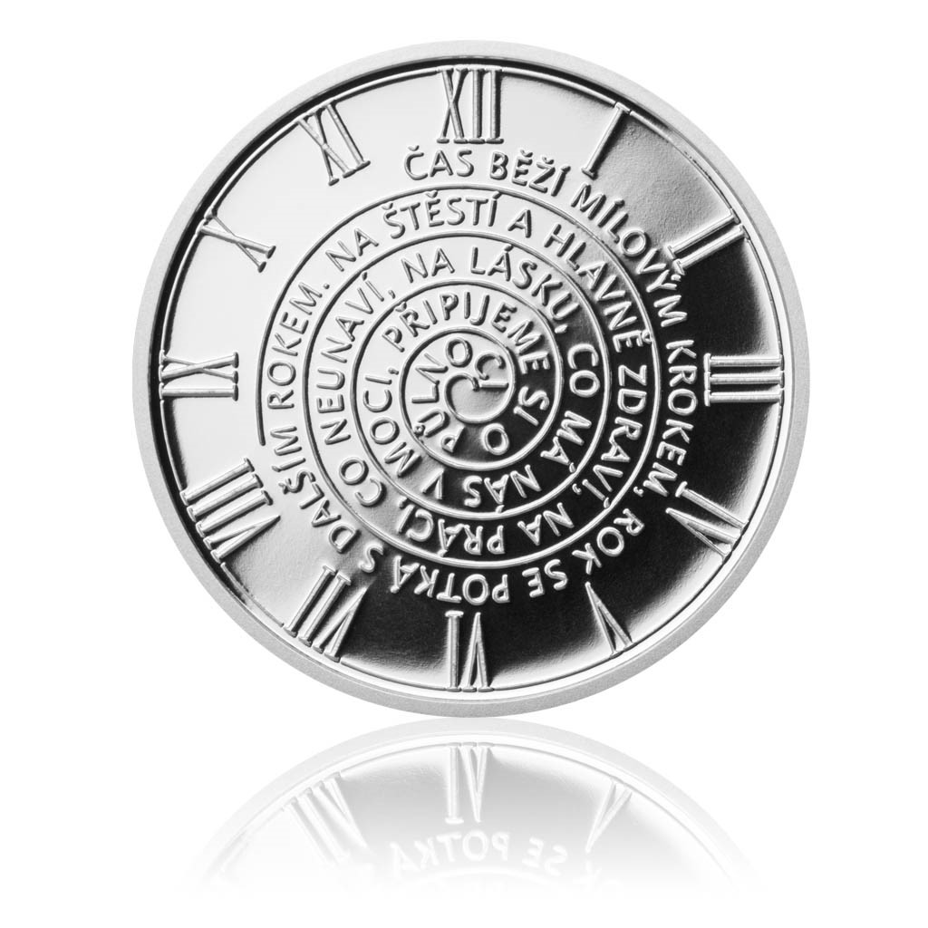 Ze zajímavostí spojených s českými novoročenkami upoutá, že první historicky doložená novoročenka z roku 1606 měla německý nápis a byla ve tvaru mince. Francouzské Pro štěstí, které ani Francouzi nepoužívají, proniklo do českých novoročenek pravděpodobně v 17. a 18. století, kdy francouzština patřila k výbavě vyšších společenských kruhů. K hlavním šiřitelům péefek patřili a patří výtvarní umělci. Tuto novoročenku vytvořil výtvarník Luboš Charvát. Na averzní straně medaile je použit ciferník od hodin a kalendář, jakožto pomůcky pro měření času. Kalendář je zachycen ve fázi otáčení listu posledního dne v roce. Pod ním už na nás vzhlíží první den v roce novém. Ručičky hodin blížící se k půlnoci symbolizují právě ten znehybnělý moment, kdy staré končí a nové začíná. Vše je podtrženo francouzským nápisem Pour Féliciter - pro štěstí, a aktuálním rokem. PF 2012 ve tvaru mince darovaná blízkým či přátelům je hezkým vyjádřením přání všeho dobrého do nového roku. Na reverzní straně jsou napsána konkrétní přání formou básničky, uspořádané do tvaru spirály. Ciferník znázorňuje, že přání všeho dobrého je časově neomezené. Náklad není limitován.
