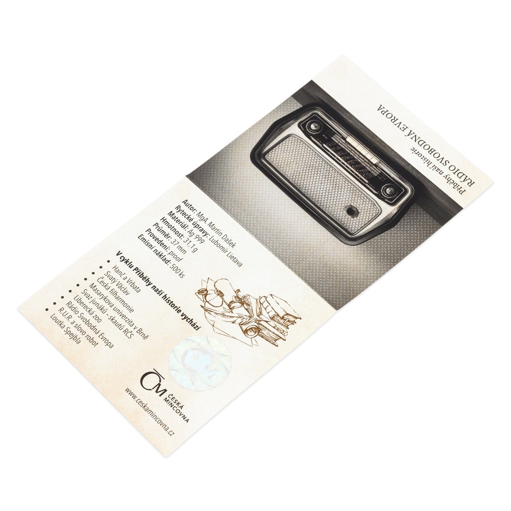 Sedmá stříbrná medaile České mincovny z cyklu „Příběhy naší historie“ vypráví o touze po pravdě a svobodě slova – připomíná příběh rádia Svobodná Evropa.
