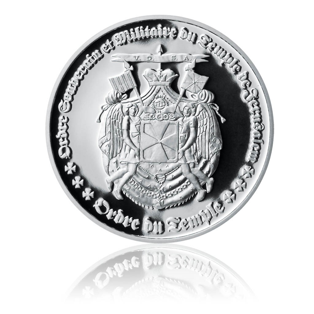 Na reverzní straně je vyobrazen novodobý templářský erb společně s novodobým názvem řádu „Ordre Souverain et Militaire du Temple de Jerusalem“, pocházejícím z období třicátých let dvacátého století. Na datum změny názvu rytířského řádu odkazuje také jeden z letopočtů na averzní straně (1932).