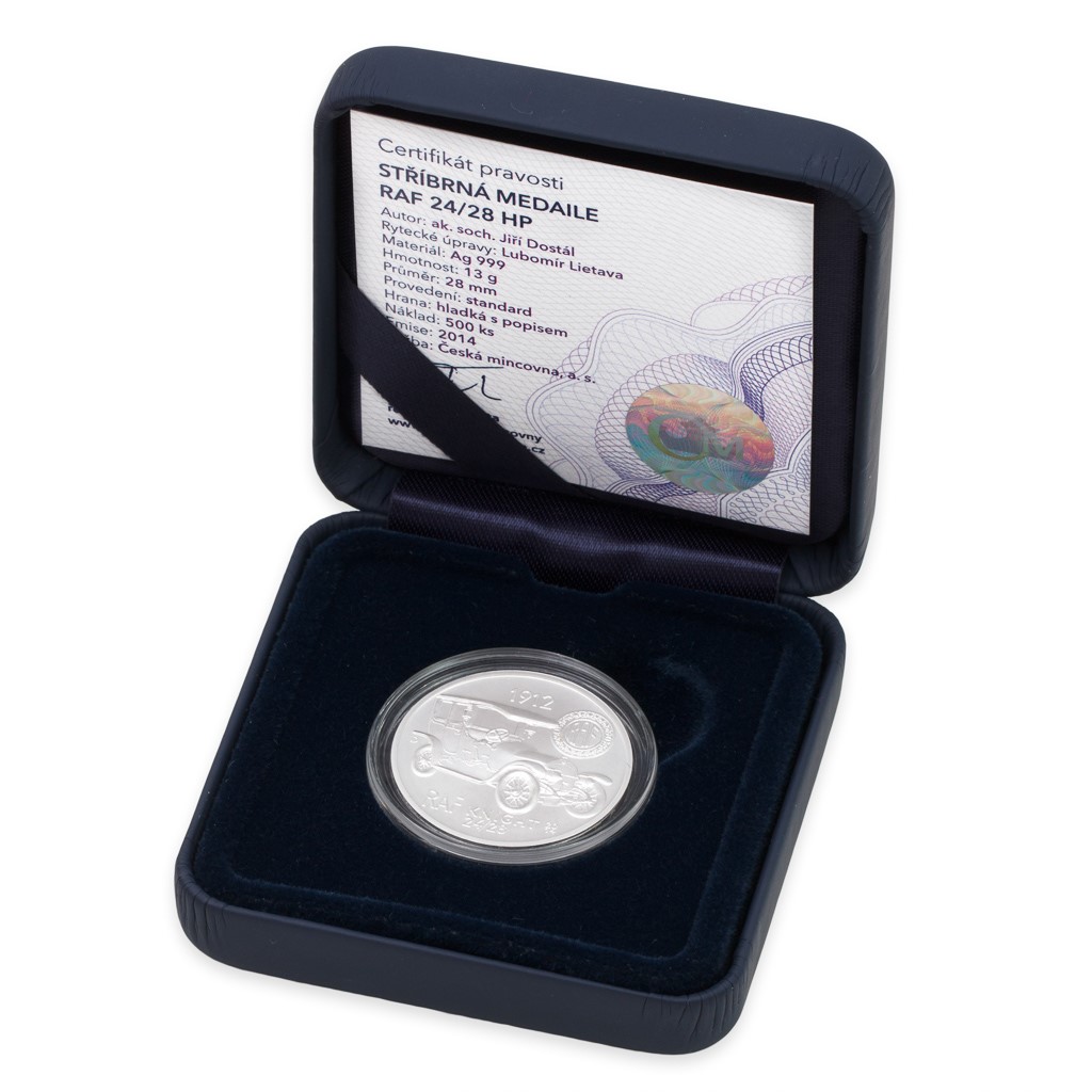 Historie se bohužel nedá vrátit, proto se s krasavci z automobilky RAF můžeme setkat už jen v muzeích. Díky České mincovně ovšem rovněž zdobí mimořádně zdařilé stříbrné medaile. Ladné křivky modelu RAF 24/28 Knight převedl na její averz do podoby plastiky akademický sochař Jiří Dostál. Ten je také autorem vtipného reverzu ve tvaru pneumatiky, který tematický provází celou sérii. Nenechte si ujít tento historický skvost a zařaďte jej po bok ostatních medailí ze sady Historie automobilismu od České mincovny. Emise je limitována pouhými 500 kusy!