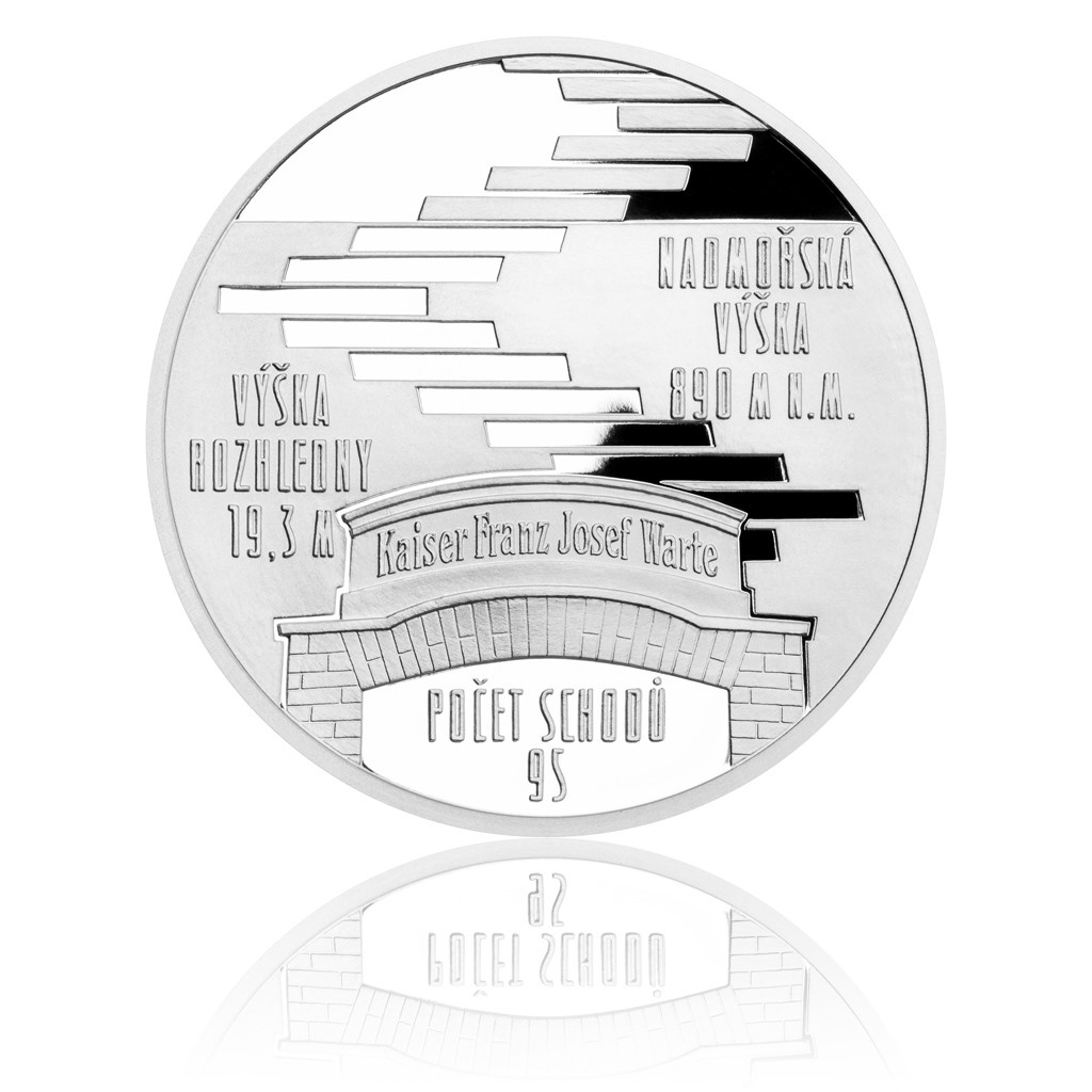 Reverz pamětní medaile z ateliéru oblíbeného medailéra Luboše Charváta je věnován právě technickým specifikacím rozhledny. Stylizované schody jsou doplněny portálem opatřeným textem „Kaiser Franz Josef Warte“, tj. Rozhledna císaře Františka Josefa. Kamenná věž totiž byla slavnostně otevřena u příležitosti 50 let panování rakouského mocnáře. Rok otevření 1898 spolu se jménem rozhledny doplňují její věrné vyobrazení na averzní straně medaile. Kompozici dotvářejí dva pošťácké rohy – jeden dobový a jeden moderní – symbolizující roli naší nejstarší horské poštovny.
