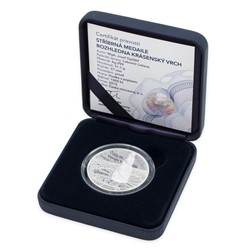 Stříbrná medaile Rozhledna Krásenský vrch proof je dalším skvostem z dílny jabloneckého medailéra a pedagoga Josefa Oplištila. Tématu se chopil s invencí sobě vlastní a obě strany tohoto uměleckého díla z ryzího stříbra o váze jedné trojské unce věnoval fantastické stavbě, jejíž tvůrci se inspirovali v orientální architektuře. Reverz, na němž se schodiště plynule stává součástí názvu medaile „ROZHLEDNA KRÁSENSKÝ VRCH“, zdobí i značka autora a České mincovny. Averz ukazuje okolí rozhledny s plasticky vystupujícími blízkými horami „PODHORNÍ VRCH“, „VLADAŘ“ a „LYSINA“. Celou originální scenérii doplňují na obzoru „KRUŠNÉ HORY“ a „KLÍNOVEC“. Numismatický klenot, po němž vaše sbírky jistě volají, je emitován v omezeném nákladu 1000 kusů. Přidejte do své kolekce rozhleden další výjimečný exemplář! Celou sbírku můžete uložit do elegantní dřevěné etue, kterou najdete v nabídce České mincovny.