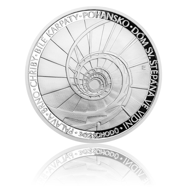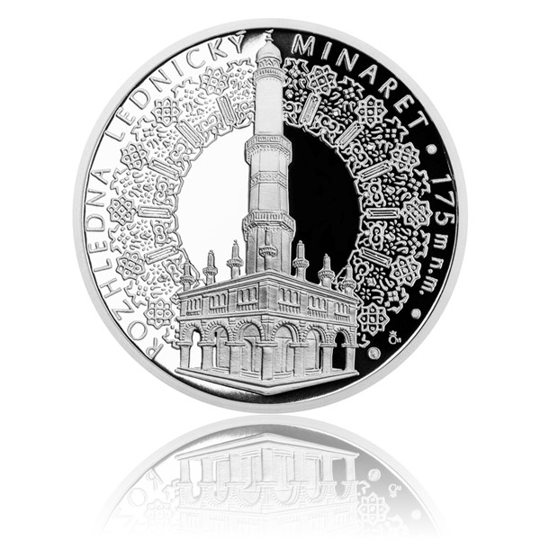 Nová medaile z ryzího stříbra ve špičkové kvalitě proof zaujme mistrovským provedením, jehož autorem je vynikající medailér, akademický sochař Zbyněk Fojtů. Na averzu se uprostřed pole skví celkový pohled na minaret obklopený orientálními arabeskami. Text uvádí LEDNICKÝ MINARET a 175 m n. m. Reverz poskytl prostor motivu schodiště rozhledny a nápisům prozrazujícím místa, která lze z věže zahlédnout – PÁLAVA, BRNO, CHŘIBY, BÍLÉ KARPATY, POHANSKO, DÓM SV. ŠTĚPÁNA VE VÍDNI –, a informaci 302 SCHODŮ. Nádherný kousek umělecky zpracovaného stříbra potěší vaši sběratelskou duši a doplní vaši cennou kolekci, kterou můžete uložit do elegantní etue.