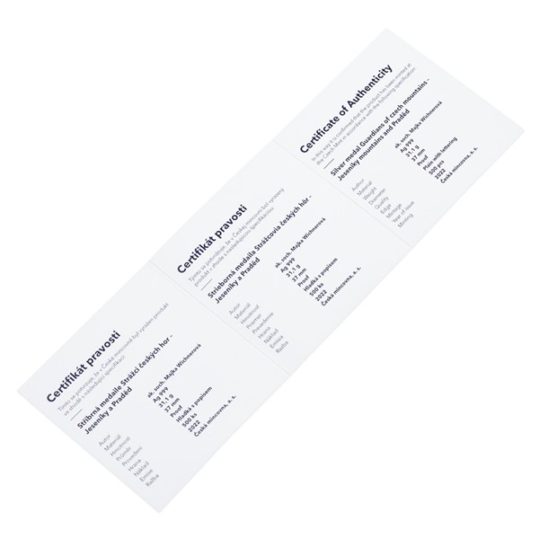 Stříbrná medaile Strážci českých hor - Jeseníky a Praděd proof