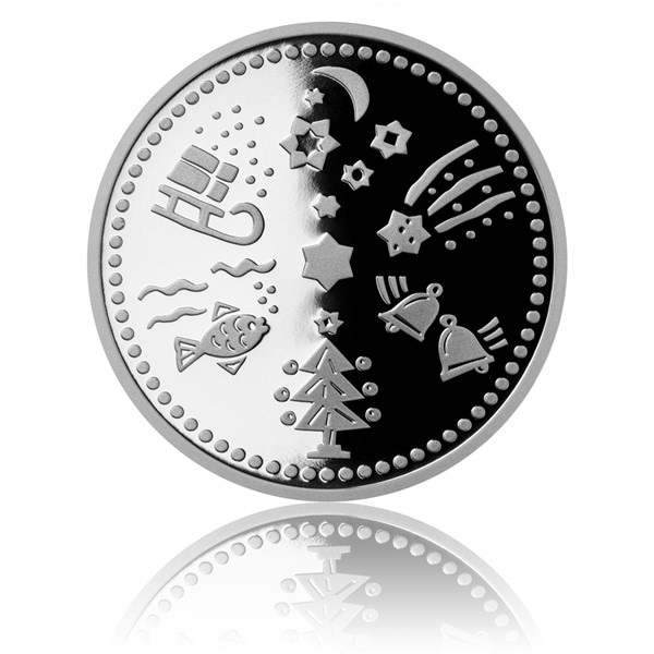 Na averzní straně medaile je kompozice s motivy vánoční hvězdy, uprostřed doplněna barevným šatonem. Na reverzní straně medaile jsou vyobrazeny tradiční vánoční symboly – zvonky, stromek, cukroví a další.
