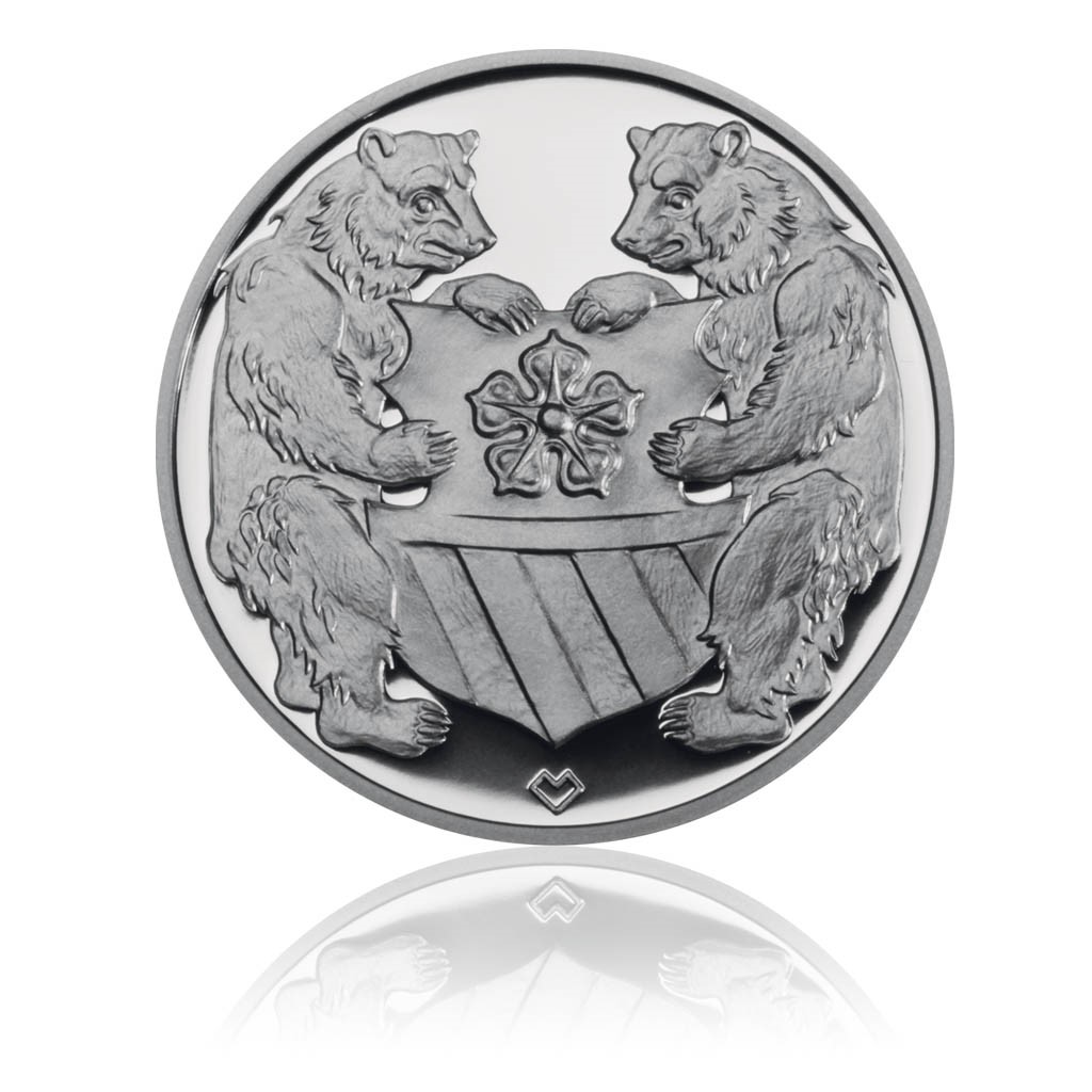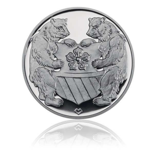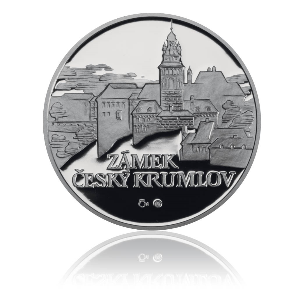 Státní hrad a zámek Český Krumlov patří svou architekturou, kulturní tradicí a rozlohou k nejvýznamnějším středoevropským památkám. V jeho interiérových instalacích a architektonických detailech je dochován stavební vývoj od 14. do 19. století. Na averzní straně medaile je zachycen hradní a později zámecký areál z pohledu od města. Dominantu tvoří renesančně upravená zámecká věž - symbol nejen zámku, ale i města. Okolo ní jsou seskupeny nejstarší objekty, v pozadí pak pokračují ty novější, které rozvíjejí zámek směrem od skalního ostrohu. Dramatická kresba terénu, ze kterého vyrůstá zámek, je ve spodní části medaile sjednocena dvouřádkovým nápisem ZÁMEK / ČESKÝ KRUMLOV. Hlavním a jediným tématem reverzní strany medaile je rožmberský erb se štítonoši. Vznikl kombinací původní rožmberské pětilisté růže s heraldickým znamením italského knížecího rodu Orsini. Z téže inspirace (Orsini – ursus – medvěd) pocházejí také medvědi jako štítonoši. Limitovaná emise 1000 kusů.