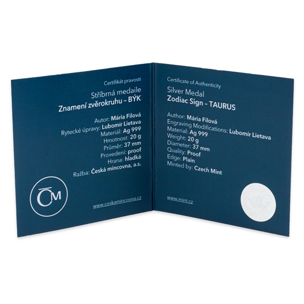 Lidem, kteří se narodili pod vlivem znamení Býka, jsou vlastní krásné a hodnotné věci. Jistě si proto zamilují také stříbrnou medaili České mincovny z řady znamení zvěrokruhu.