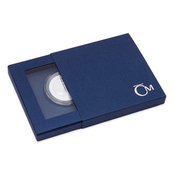 Stříbrné medaile jsou uloženy do dárkového balení, které díky průhlednému krytu a vyklápěcímu stojánku poslouží rovněž jako stylový rámeček.