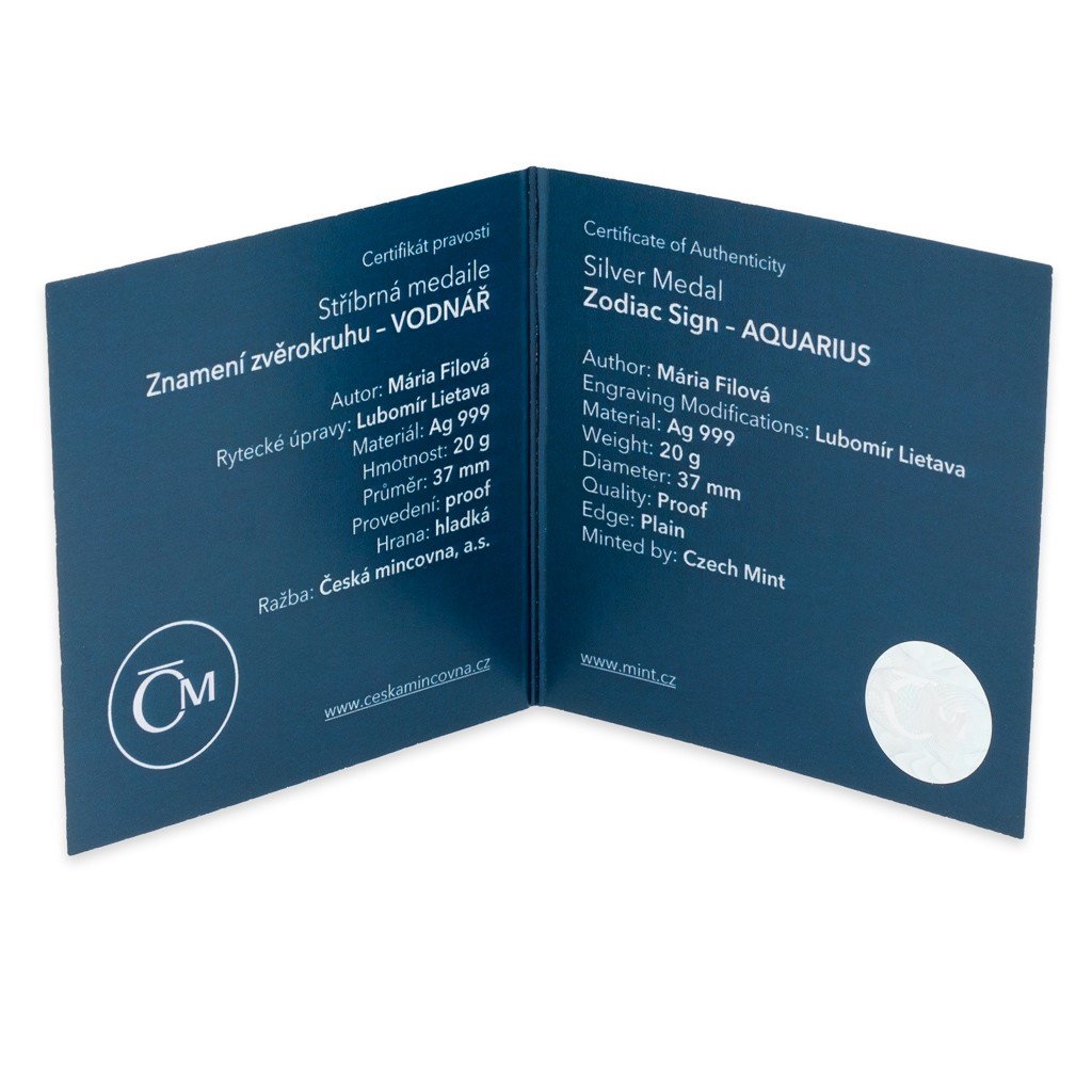 Chcete udělat radost zrozenci znamení Vodnáře? Potěšte ho talismanem pro štěstí v podobě stříbrné medaile České mincovny ze série 12 znamení zvěrokruhu.