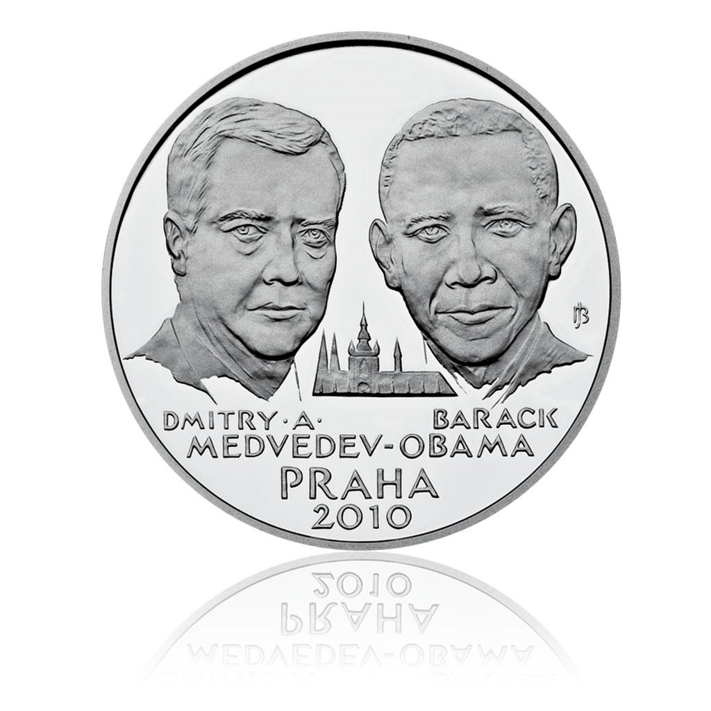 Historickému setkání prezidentů USA a Ruska v Praze v dubnu 2010 a podpisu smlouvy START o snížení počtu jaderných zbraní je věnována stříbrná medaile Obama – Medveděv – Praha 2010. Medaile symbolicky navazuje na předchozí medaili Barack Obama – Praha 2009. Averzní strana zobrazuje prezidenty USA a Ruska v pozadí s Pražským hradem, kde byla smlouva podepsána. Reverzní strana zpodobňuje hlavní pražské památky, v opisu s názvem smlouvy v anglickém i ruském jazyce. Medaile se těší velkému zájmu, a to především ze strany sběratelů, kteří si chtějí připomenout mezinárodní událost významnou pro historii lidstva, jejíž nejdůležitější část – podpis smlouvy START– se odehrála v České republice. Limitovaná emise 1000 kusů