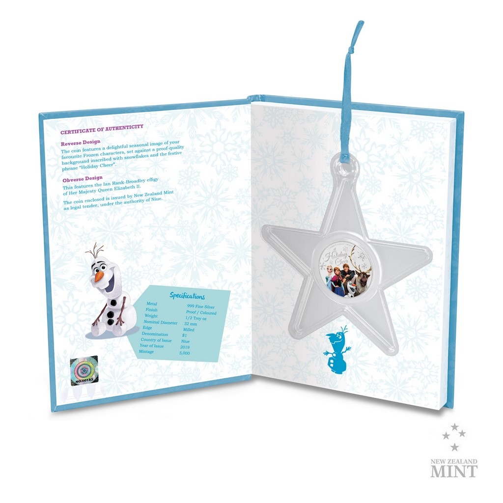 Kompletní pětice oblíbených hrdinů je vyobrazena na reverzní straně mince, a to v živých barvách – jako by vyskočili přímo z filmu. Kompozici dotváří řada sněhových vloček a anglický nápis HOLIDAY CHEER (vánoční veselí). Averzní strana nese portrét a jméno Alžběty II., nominální hodnotu ONE DOLLAR (NZD) a rok emise 2019 – čili atributy emitenta mince, kterým je tichomořský ostrov Niue. Podoba oficiálně licencované mince je dílem designérů Novozélandské mincovny.
