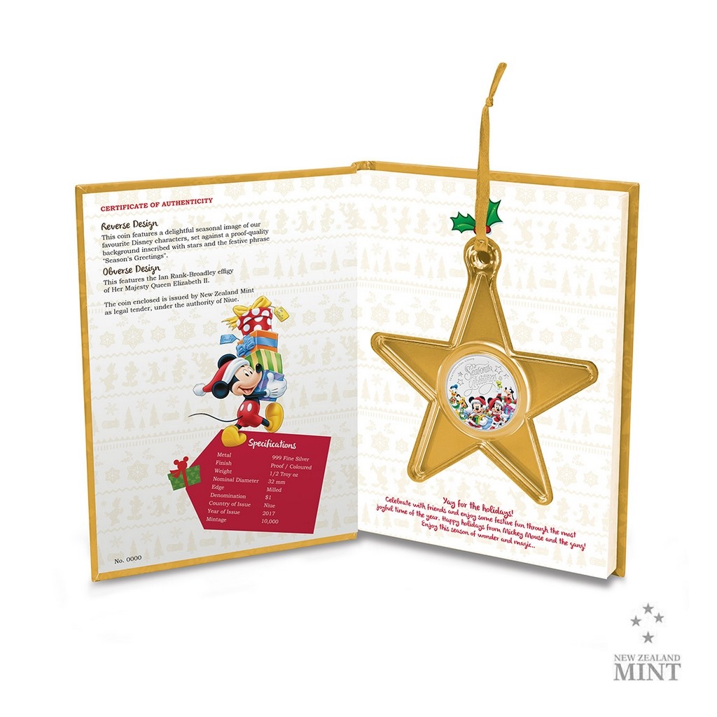 Stříbrná, vánočně laděná mince s motivy Disneyho animovaných hrdinů není jen krásným dárkem pod stromeček. Díky originálnímu balení zároveň poslouží jako atraktivní vánoční ozdoba.