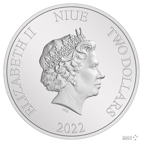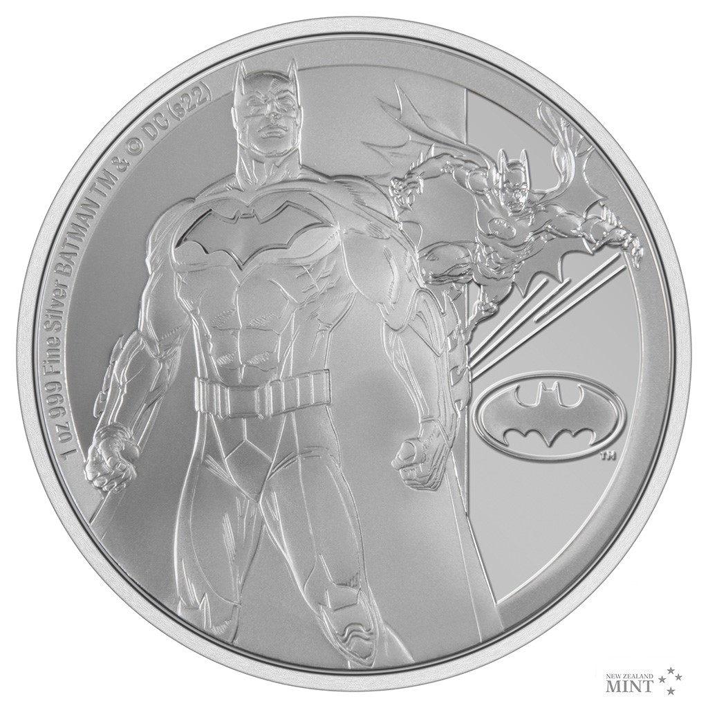 Reverzní strana mince předkládá dvě vyobrazení Batmana – stojící figuru doprovází postava v akci s vlajícím pláštěm. V reliéfu nechybí ikonický symbol netopýra. Averz je pak věnován nezbytným atributům emitenta, kterým je ostrov Niue – tedy jménu a portrétu královny Alžběty II., nominální hodnotě TWO DOLLARS (NZD) a roku emise 2022. Ražba, která vychází v oficiální licenci vydavatelství DC Comics, je dílem Novozélandské mincovny.
