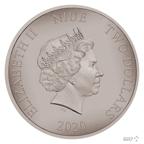 Reverzní straně mince vévodí stegosaurus ve výhružné póze s ocasem připraveným k úderu. Zatímco dinosaurus je vyvedený v živých barvách, okolní reliéf plný prehistorické flóry je podtržený patinou. Averzní strana pak nese portrét a jméno panovnice Alžběty II., rok vydání 2020 a nominální hodnotu TWO DOLLARS (NZD) – tedy atributy emitenta, kterým je ostrov Niue. Mince je dílem kolektivu Novozélandské mincovny.