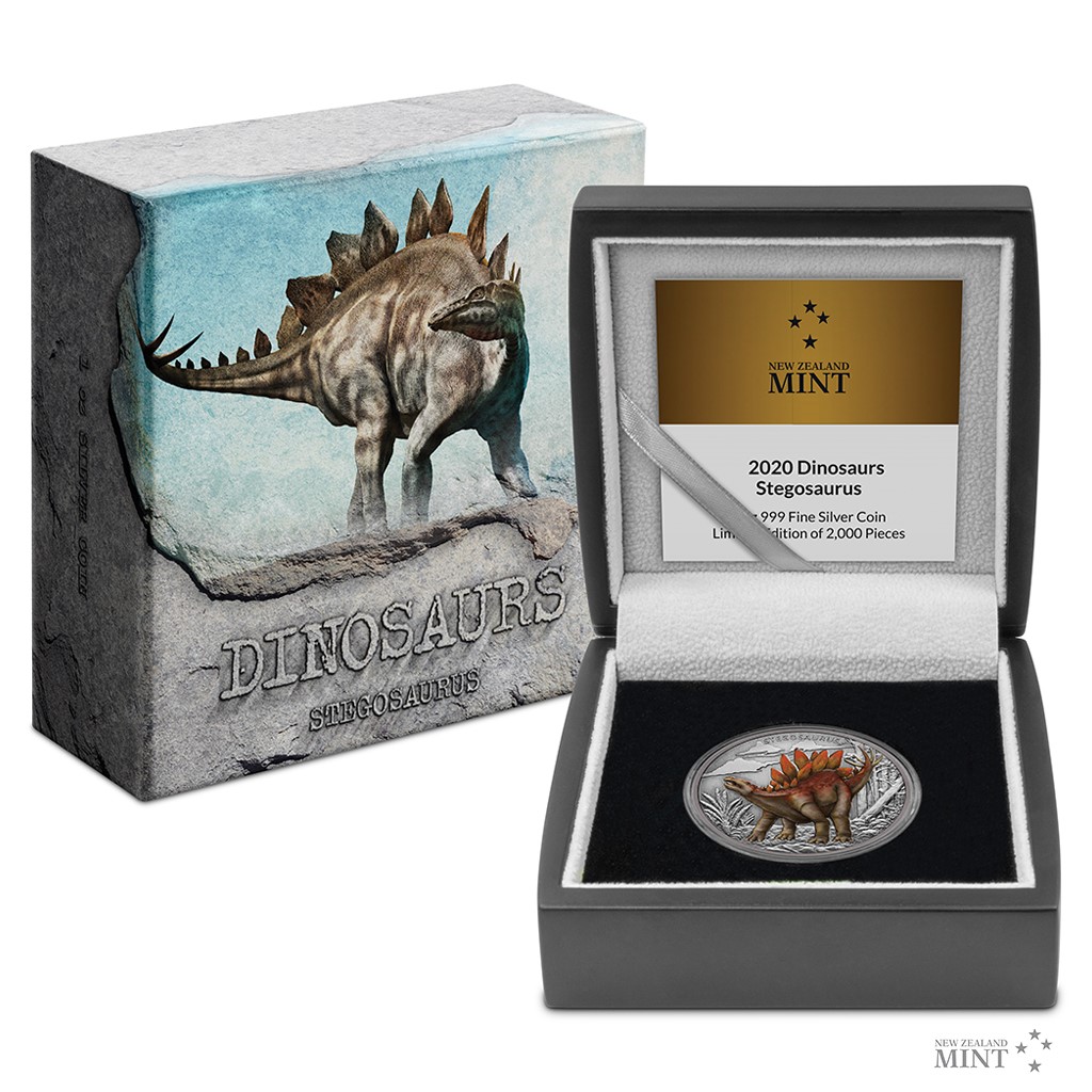 Stříbrná mince 1 OZ 2 NZD Dinosaurus: Stegosaurus stand