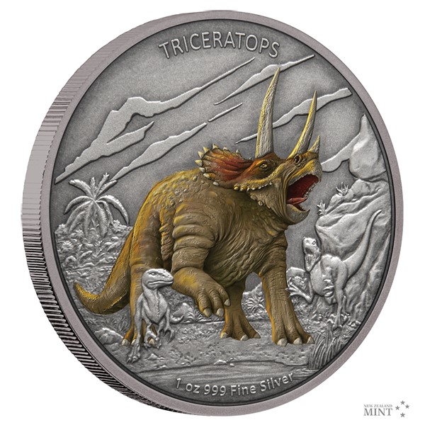 První stříbrná mince ze sběratelského cyklu věnovaného dinosaurům je věnována triceratopsovi.