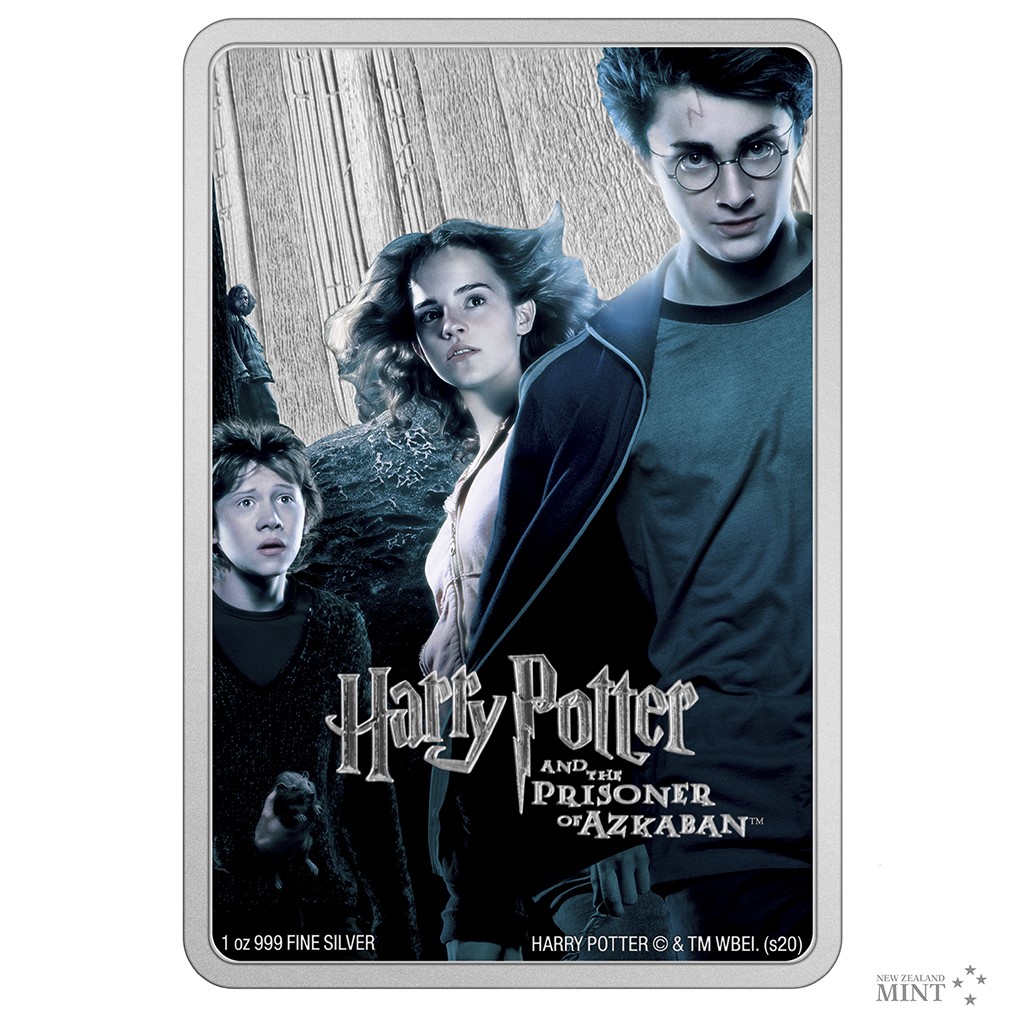 Neobvyklá obdélníková mince má podobu filmového plakátu. V živých barvách, kterých bylo docíleno technologií kolorování, se objevuje trojice nerozlučných přátel – Harry, Ron a Hermiona –, které zpovzdálí pozoruje Sirius Black. Ve stříbrném reliéfu se pak vyjímají stromy Zapovězeného lesa. Protože vydavatelem mince je ostrov Niue, její averzní strana nese jeho atributy – portrét a jméno královny Alžběty II., rok vydání mince 2020 a nominální hodnotu 2 DOLLARS (NZD). Podoba oficiálně licencované ražby je dílem výtvarného kolektivu Novozélandské mincovny.