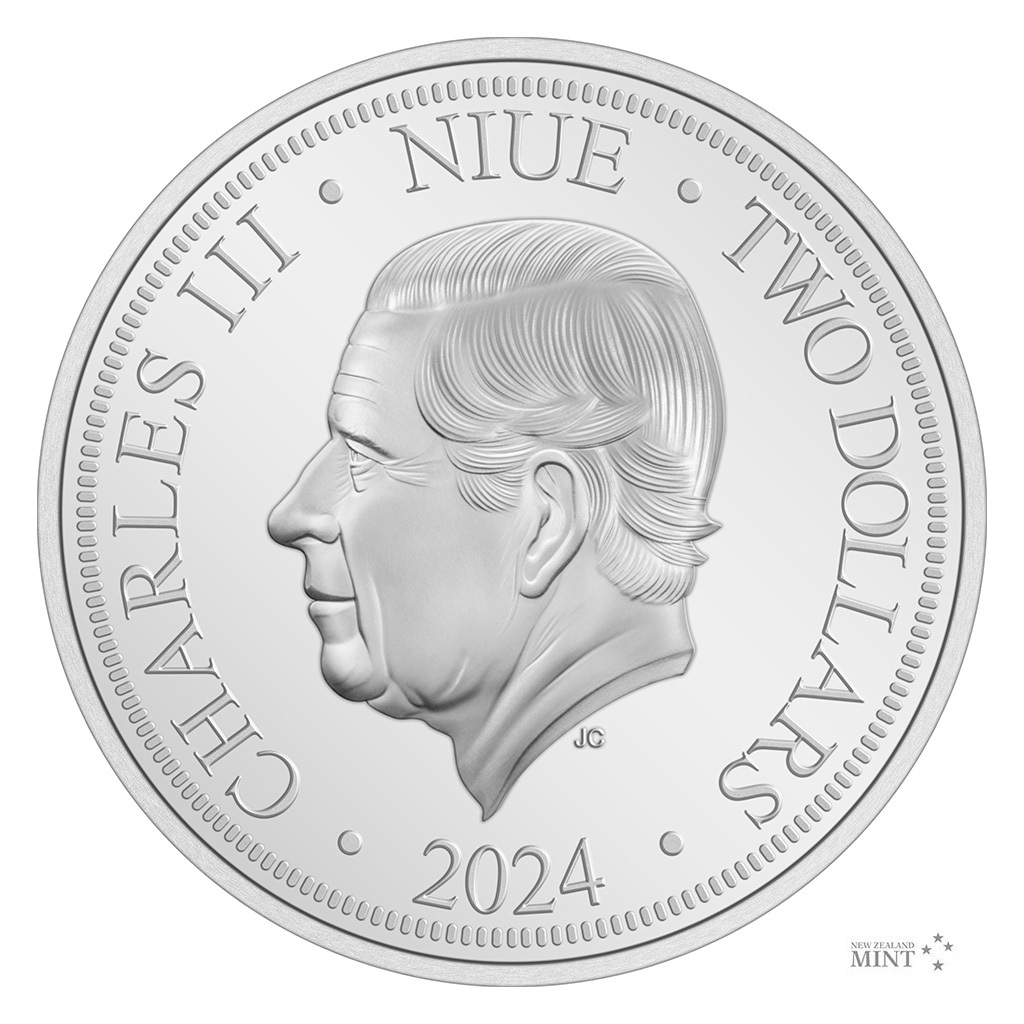 Reverzní strana mince předkládá Iron Mana v bojové póze – s rukavicí připravenou vypálit repulzorový paprsek. Kompozici doplňuje kolorovaná kresba jeho ikonické železné masky. Averz je pak věnován nezbytným atributům emitenta, kterým je ostrov Niue – tedy státnímu znaku, nominální hodnotě TWO DOLLARS (NZD) a roku emise 2024. Ražba, která vychází v oficiální licenci společnosti Marvel, je dílem Novozélandské mincovny.
