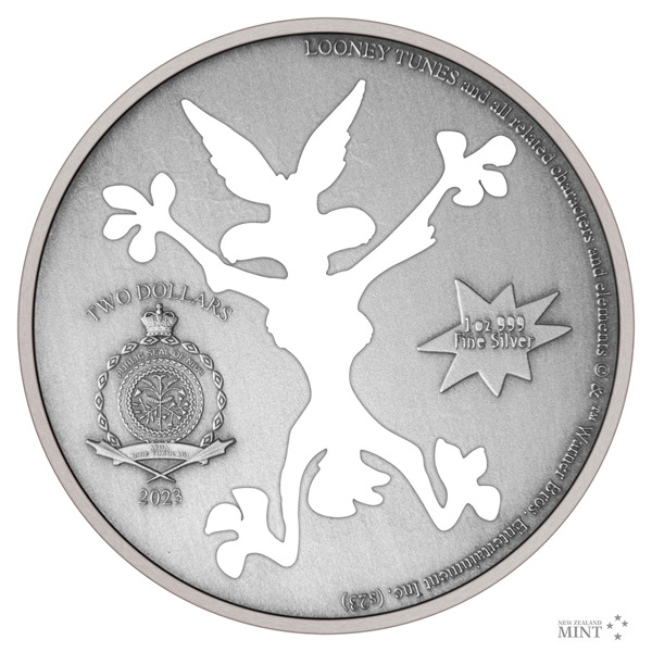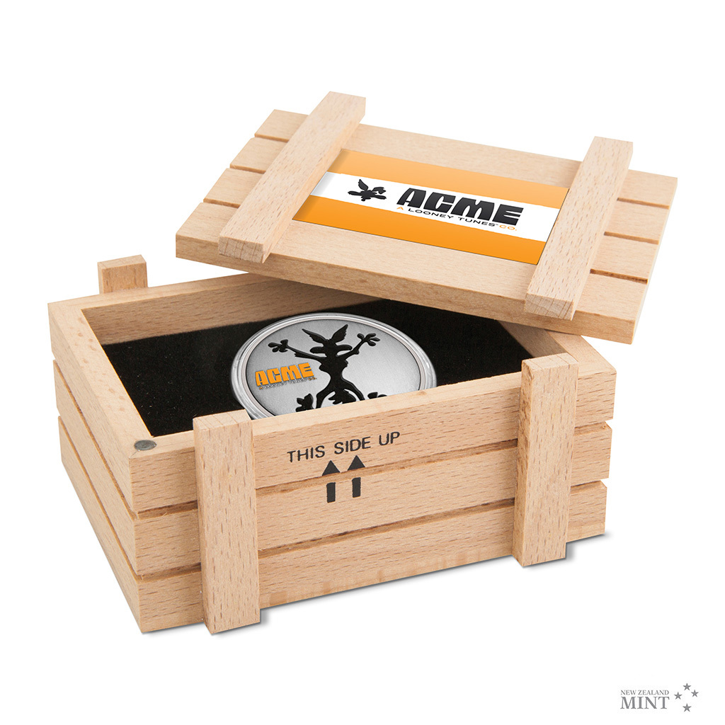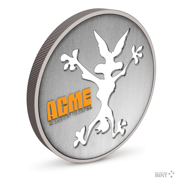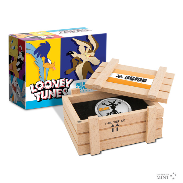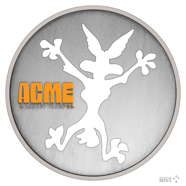 Vtipný design děravé mince odkazuje na ikonický gag, kdy Wilda narazí do skály a nechá za sebou obrys ve tvaru kojota. Doplňkovým motivem reverzní strany je logo společnosti ACME, která je Wildovým skutečným protivníkem. Averz je pak věnován nezbytným atributům emitenta, kterým je ostrov Niue – tedy státnímu znaku, nominální hodnotě TWO DOLLARS (NZD) a roku emise 2023. Minci v oficiální licenci Warner Bros. vyrazil tým Novozélandské mincovny.