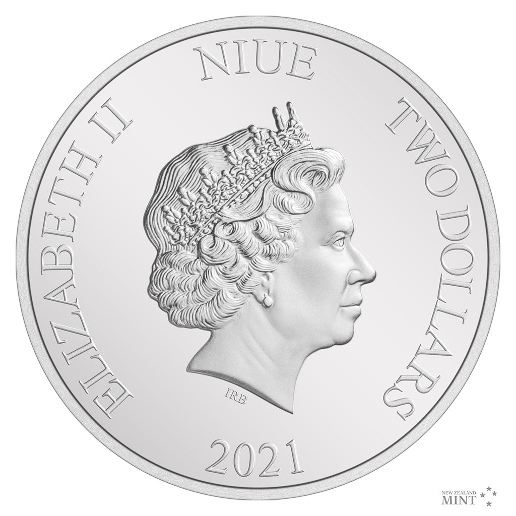 Reverzní straně mince dominuje kolorované vyobrazení Sama Křepelky, který se plaví v elfském člunu. Averzní strana pak předkládá portrét a jméno panovnice Alžběty II., rok vydání 2021 a nominální hodnotu TWO DOLLARS (NZD) – tedy atributy emitenta mince, kterým je ostrov Niue. Minci v oficiální filmové licenci vyrazil tým Novozélandské mincovny.