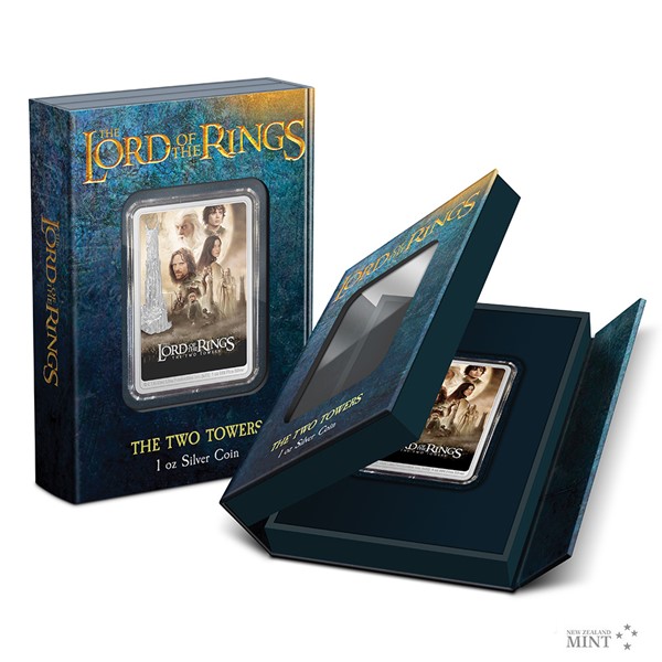 Zbožňované trilogii Pán prstenů vzdává hold série stříbrných mincí. Druhá emise s motivem filmového plakátu připomíná snímek s podtitulem Dvě věže.